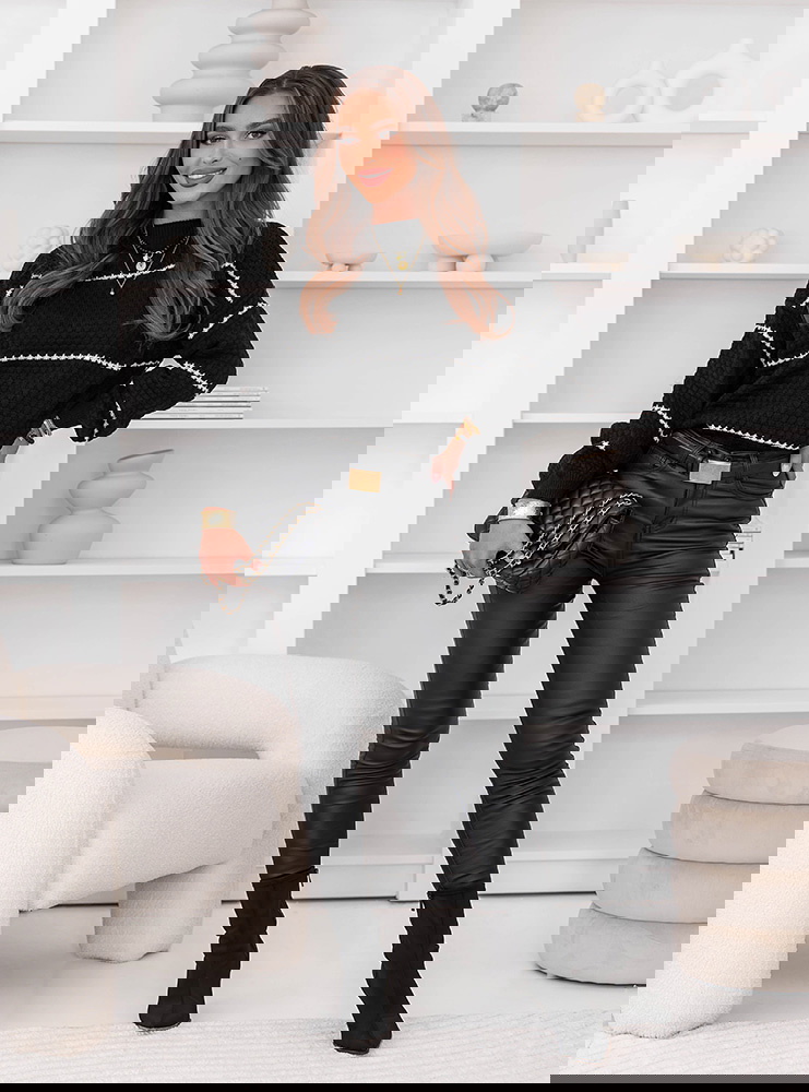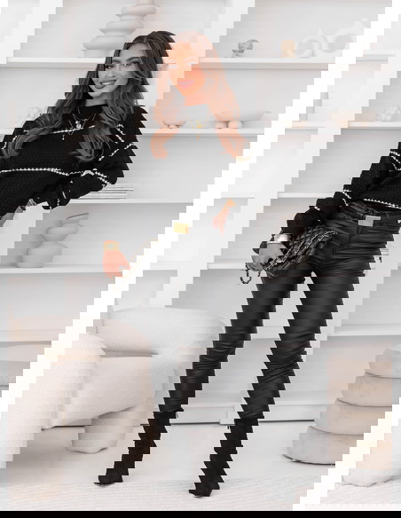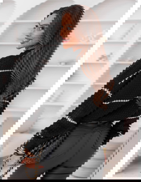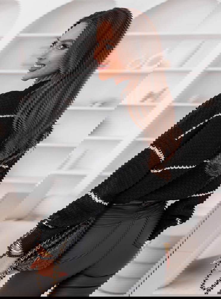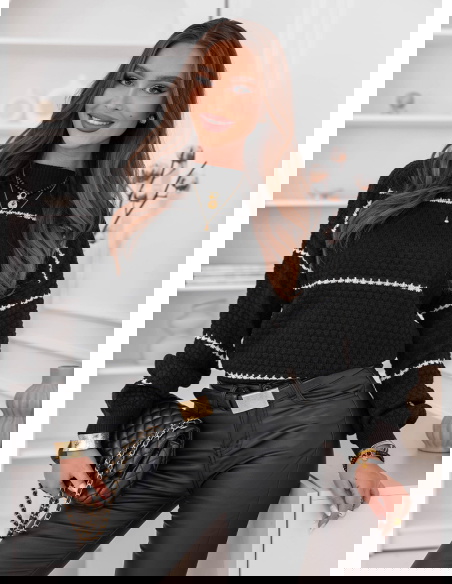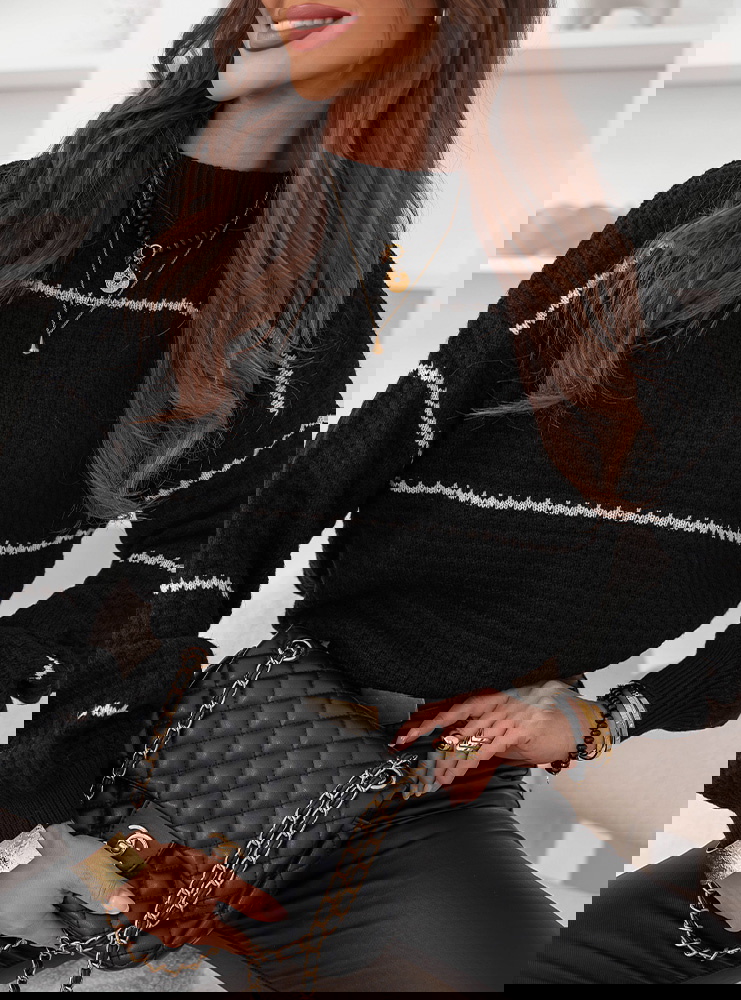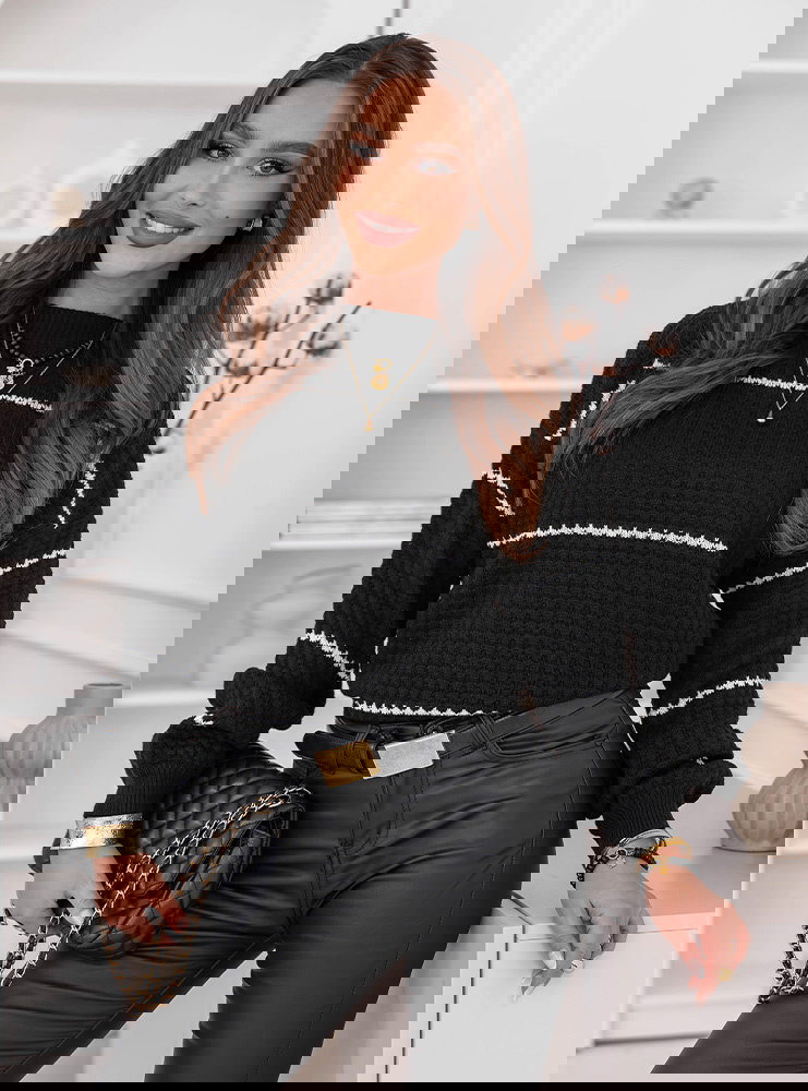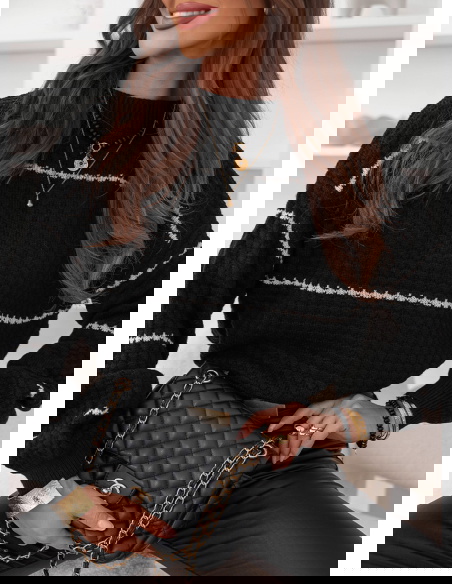 Czarny sweter z ozdobnym splotem w paski Charito