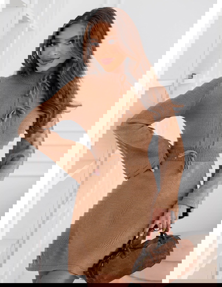 Swetrowa sukienka mini Maitildaa - mocha mousse