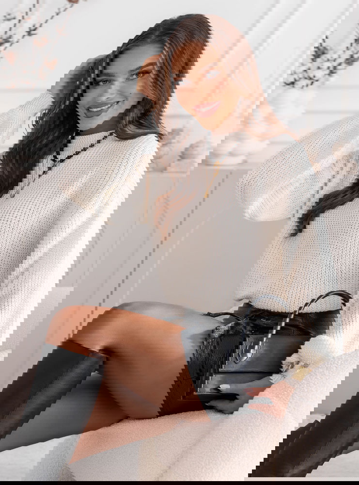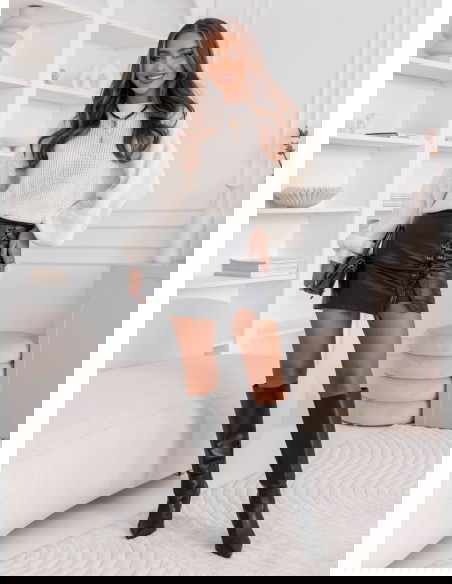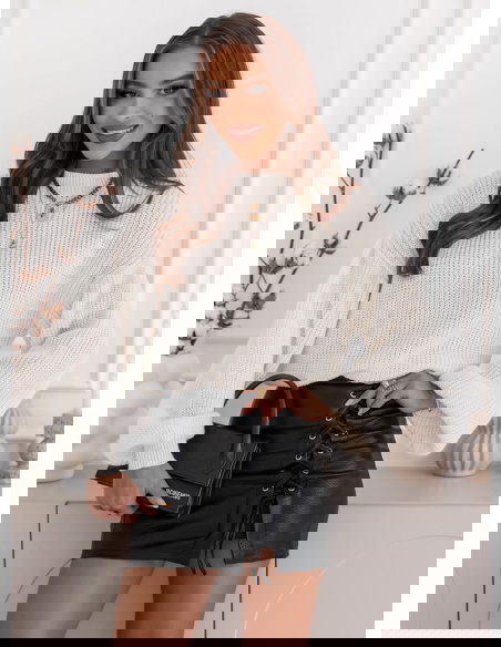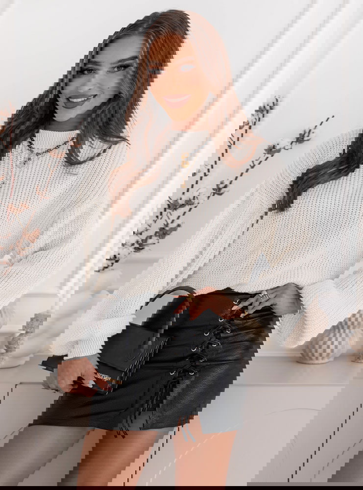 Krótki sweter z bufiastymi rękawami Ninette - ecru to idealna propozycja dla kobiet, które cenią sobie połączenie prostoty i eleganckiego wdzięku. To model, który przyciąga uwagę swoim subtelnym kolorem i nowoczesnym krojem. Jasny odcień ecru pięknie rozświetla cerę i doskonale komponuje się z jesiennymi stylizacjami. Krótszy fason nadaje sylwetce lekkości, a bufiasty krój rękawów dodaje całości modowego charakteru. Sweter zachwyca minimalizmem, ale nie brakuje mu wyjątkowego stylu i kobiecego uroku. To idealny wybór na dni, kiedy chcesz wyglądać modnie i czuć się komfortowo. Luźniejszy krój sprawia, że sweter prezentuje się lekko, a jednocześnie świetnie podkreśla talię przy zestawieniu z wysokim stanem. To model, który sprawdzi się w wielu stylizacjach – od eleganckich po codzienne. Wyróżnia się ponadczasowym wyglądem, dzięki czemu będzie doskonałym elementem jesiennej garderoby.