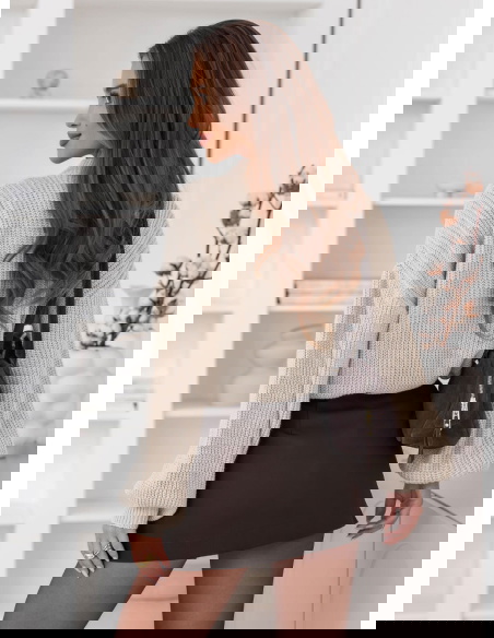 Beżowy krótki sweter z bufiastymi rękawami Ninette to idealny wybór na wiele okazji. Świetnie sprawdzi się w codziennych stylizacjach – do pracy, na spotkania czy spacery. Można go zestawić z eleganckimi spodniami, skórzaną mini lub spódnicą midi.