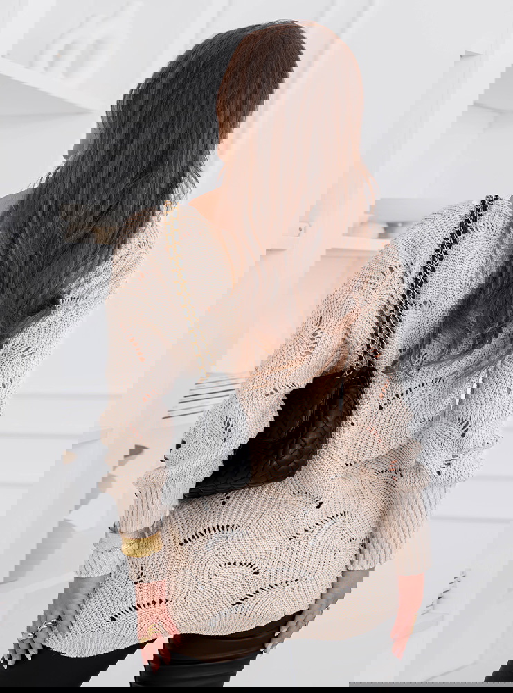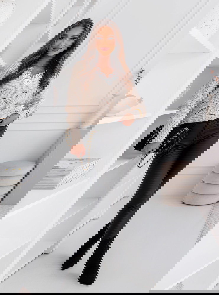 Beżowy sweter z ozdobną koronką Lashunta to idealna propozycja dla kobiet, które lubią subtelne, kobiece akcenty w codziennych stylizacjach. Jego delikatny kolor wprowadza lekkość i elegancję, a koronkowe wykończenie przy dekolcie dodaje całości wyjątkowego uroku. To model, który łączy prostotę z romantycznym detalem, tworząc efekt pełen wdzięku i klasy. Luźniejszy krój zapewnia komfort noszenia, a jednocześnie pięknie układa się na sylwetce. Ażurowy splot nadaje mu lekkości i sprawia, że prezentuje się niezwykle stylowo. To propozycja idealna na chłodniejsze dni, gdy chcesz wyglądać kobieco i z klasą. Beżowy odcień doskonale komponuje się z ciepłą, jesienną paletą barw. Sweter zachwyca nie tylko wyglądem, ale i uniwersalnością – pasuje do wielu okazji i stylów. To model, który bez wysiłku podkreśli Twój naturalny wdzięk i doda stylizacji eleganckiego charakteru.