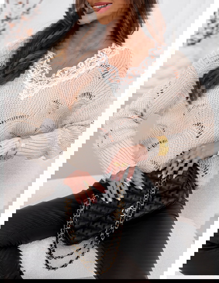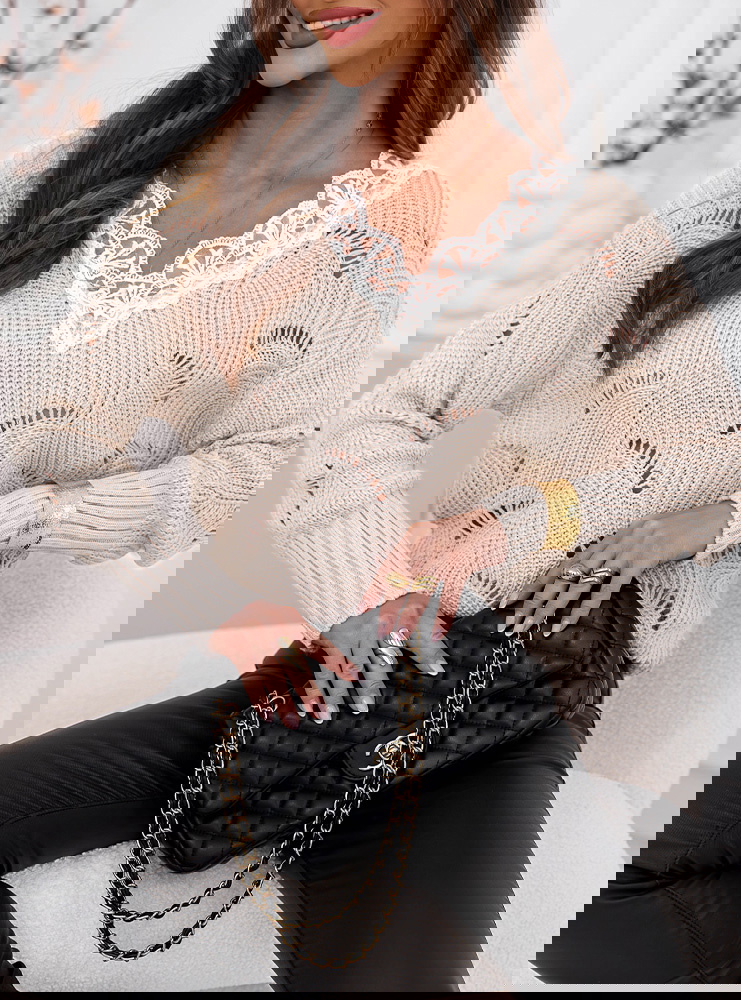 Beżowy sweter z ozdobną koronką Lashunta doskonale sprawdzi się zarówno na co dzień, jak i na bardziej wyjątkowe okazje. Będzie idealny do pracy, na spotkanie z przyjaciółkami czy spokojny wieczór w domowym zaciszu.