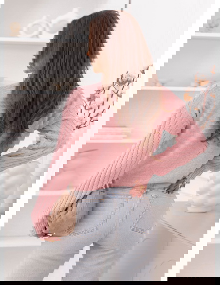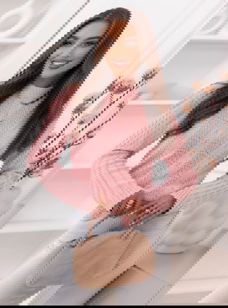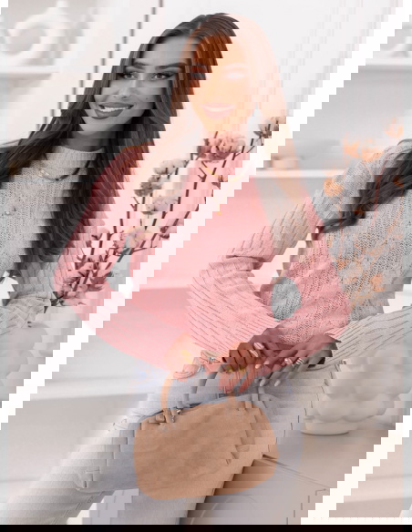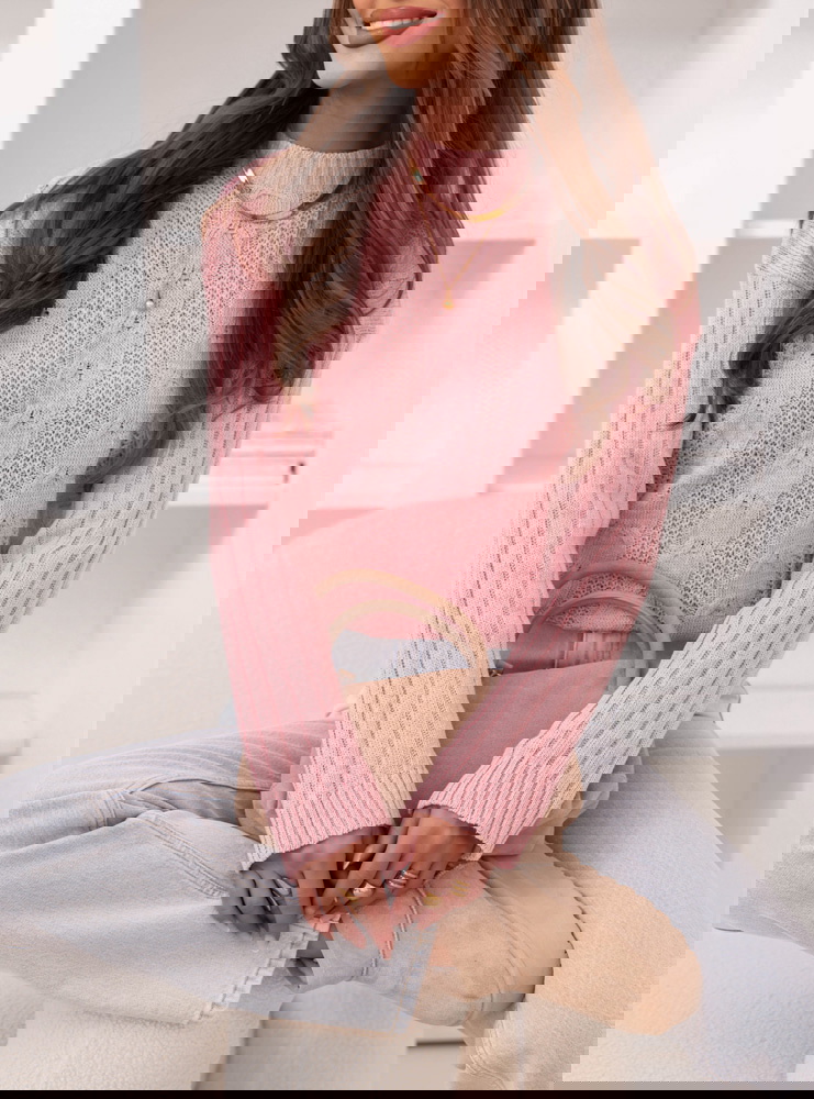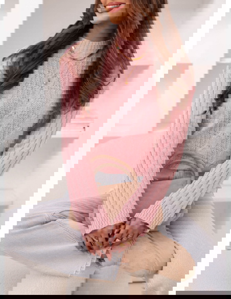 Pudrowy sweter z warkoczowymi splotami Kahlea
