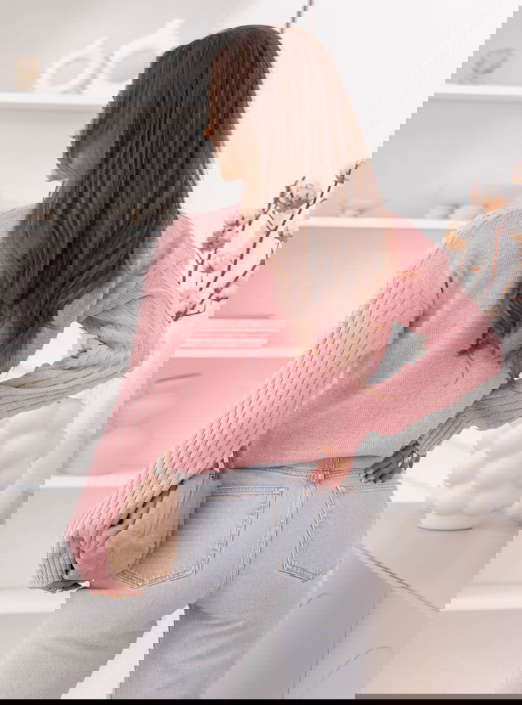 Modelka prezentuje produkty o rozmiarach S/M