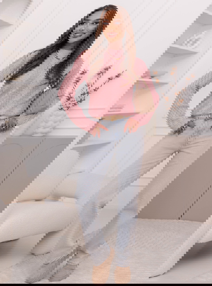 Pudrowy sweter z warkoczowymi splotami Kahlea to idealna propozycja dla miłośniczek subtelnych, kobiecych stylizacji. To model, który łączy w sobie delikatność koloru z ponadczasowym wzorem, tworząc wyjątkowo przytulny efekt. Jasnoróżowy odcień wprowadza do stylizacji lekkość i świeżość, doskonale podkreślając urodę. Warkoczowe sploty dodają mu struktury i charakteru, nadając klasyczny, ale wciąż bardzo modny wygląd. Sweter ma prosty krój, który pięknie układa się na sylwetce i zapewnia komfort przez cały dzień. To propozycja idealna na jesienno-zimowe dni, kiedy chcesz czuć się ciepło, ale nadal wyglądać stylowo. Jego subtelny urok sprawia, że pasuje zarówno do codziennych, jak i bardziej eleganckich zestawień. Pudrowy kolor dodaje mu dziewczęcego wdzięku, a całość prezentuje się niezwykle lekko i harmonijnie. To sweter, który bez wysiłku dopełni każdą stylizację, wprowadzając do niej nutę delikatności.