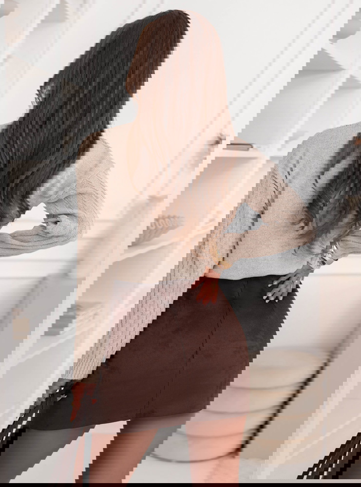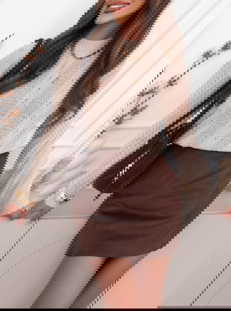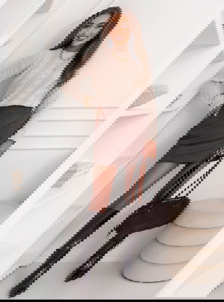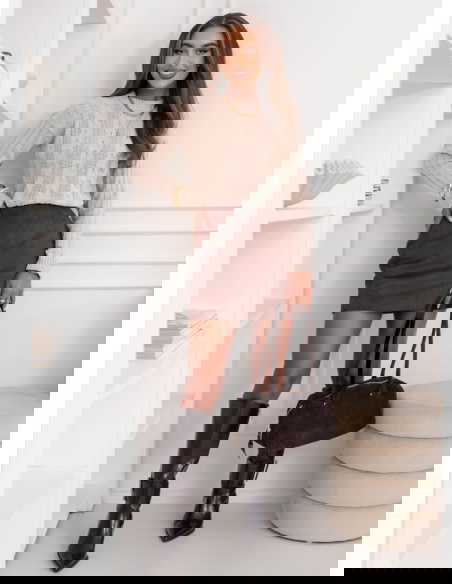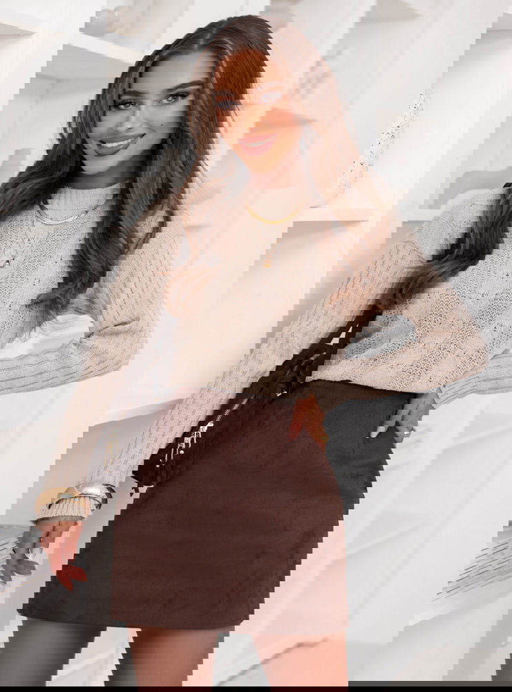 Beżowy sweter z warkoczowymi splotami Kahlea to klasyka, która nigdy nie wychodzi z mody. Jego delikatny, ciepły odcień doskonale wpisuje się w jesienny klimat, pełen przytulności i naturalnych barw. To model, który łączy prostotę z urokiem tradycyjnych splotów, tworząc ponadczasowy efekt. Subtelne wzory w stylu warkoczowym dodają mu struktury i charakteru, a jednocześnie sprawiają, że prezentuje się wyjątkowo kobieco. Sweter ten to idealny wybór na chłodniejsze dni, kiedy chcesz czuć się komfortowo, ale wciąż wyglądać stylowo. Beżowy kolor świetnie komponuje się z całą gamą jesiennych odcieni – od ciepłych brązów po głęboką zieleń. To model, który pasuje do wielu stylizacji – od eleganckich po bardziej codzienne. Jego klasyczny krój sprawia, że pięknie prezentuje się zarówno ze spódnicą, jak i ze spodniami. Każdy detal został dopracowany, by podkreślić subtelny, kobiecy charakter tego swetra. To propozycja dla kobiet, które cenią uniwersalny styl z nutą elegancji.