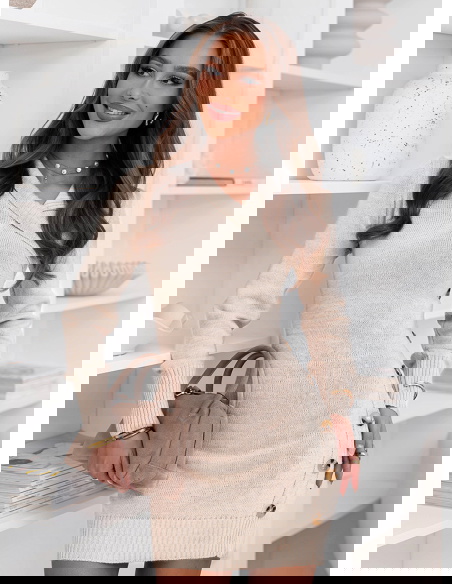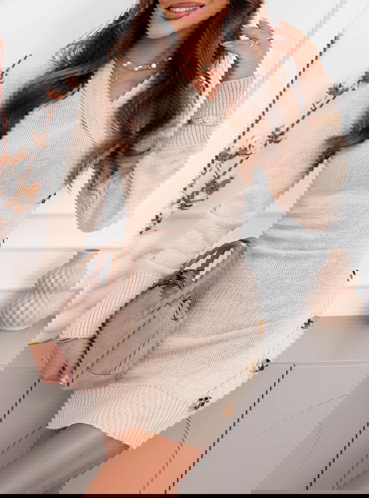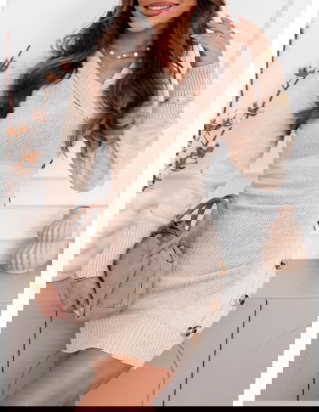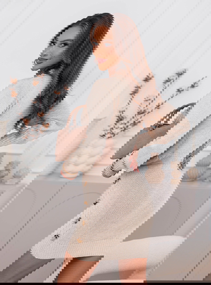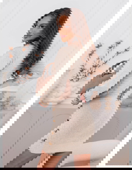 Beżowa swetrowa sukienka z ozdobnymi guzikami Milteisha