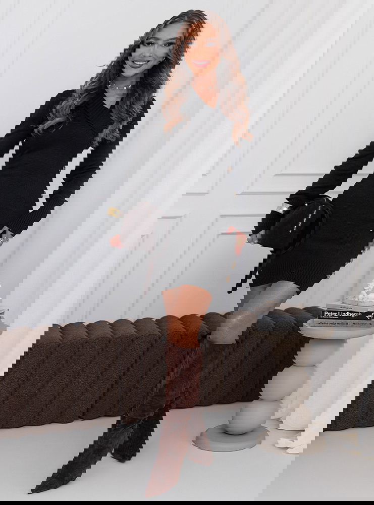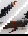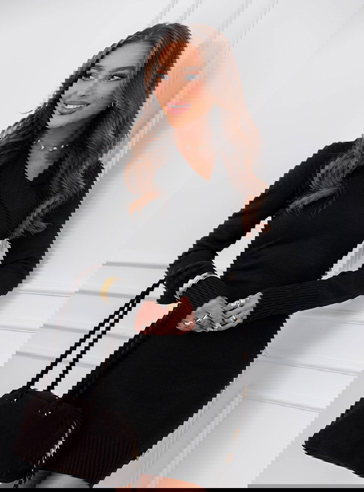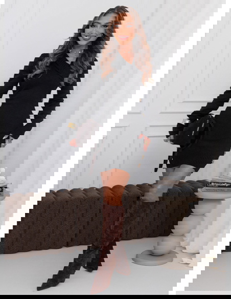 Czarna swetrowa sukienka z ozdobnymi guzikami Milteisha to połączenie elegancji i codziennego komfortu w najmodniejszym wydaniu. Jej dopasowany krój subtelnie podkreśla sylwetkę, jednocześnie zapewniając wygodę na co dzień. Klasyczna czerń nadaje jej uniwersalnego charakteru, a złote guziki wzdłuż boku stanowią wyjątkowy, stylowy akcent. To model, który idealnie wpisuje się w jesienny klimat – przytulny, kobiecy i pełen szyku. Dekolt w kształcie kopertowym dodaje całości elegancji i delikatnie wysmukla szyję. Swetrowa struktura sprawia, że sukienka prezentuje się modnie i jednocześnie zapewnia przyjemne ciepło. To doskonały wybór dla kobiet, które cenią prostotę z nutą luksusu. Sukienka jest niezwykle uniwersalna – można ją stylizować zarówno w casualowym, jak i bardziej wyjściowym klimacie. Każde jej założenie to gwarancja stylowego wyglądu i kobiecego wdzięku.