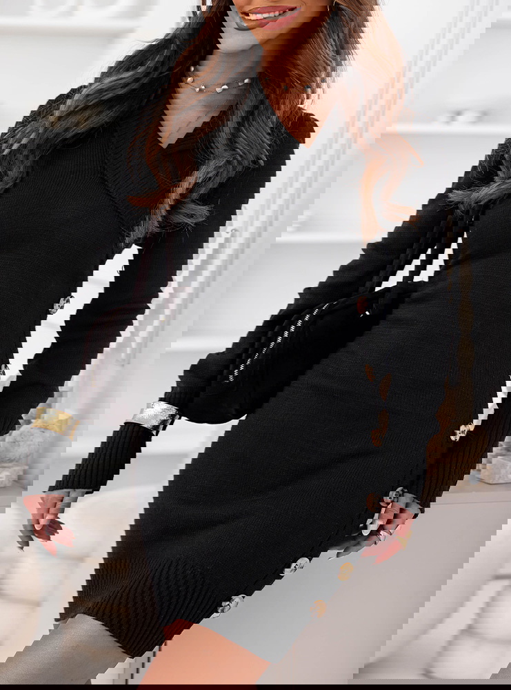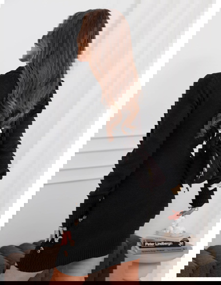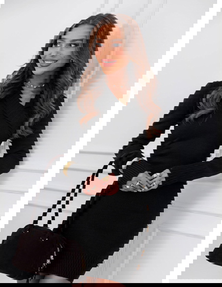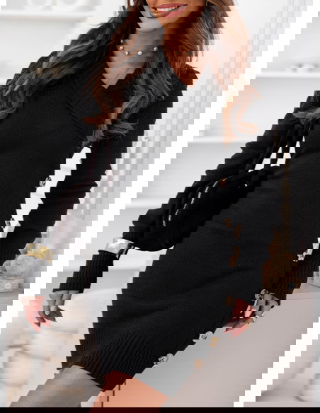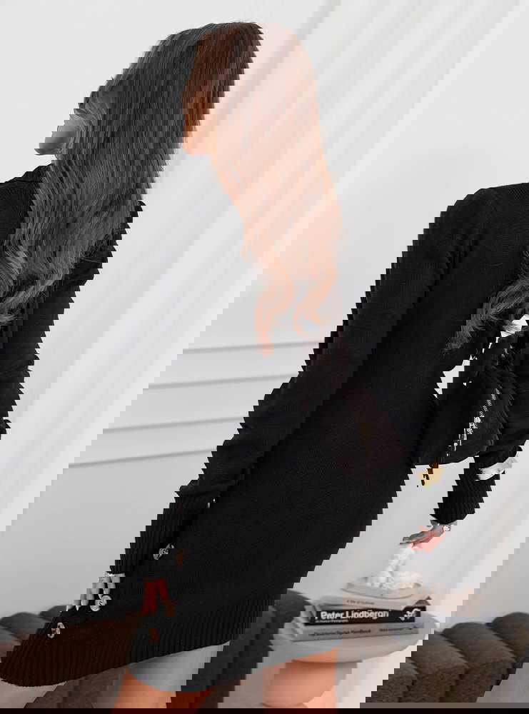 Czarna swetrowa sukienka z ozdobnymi guzikami Milteisha