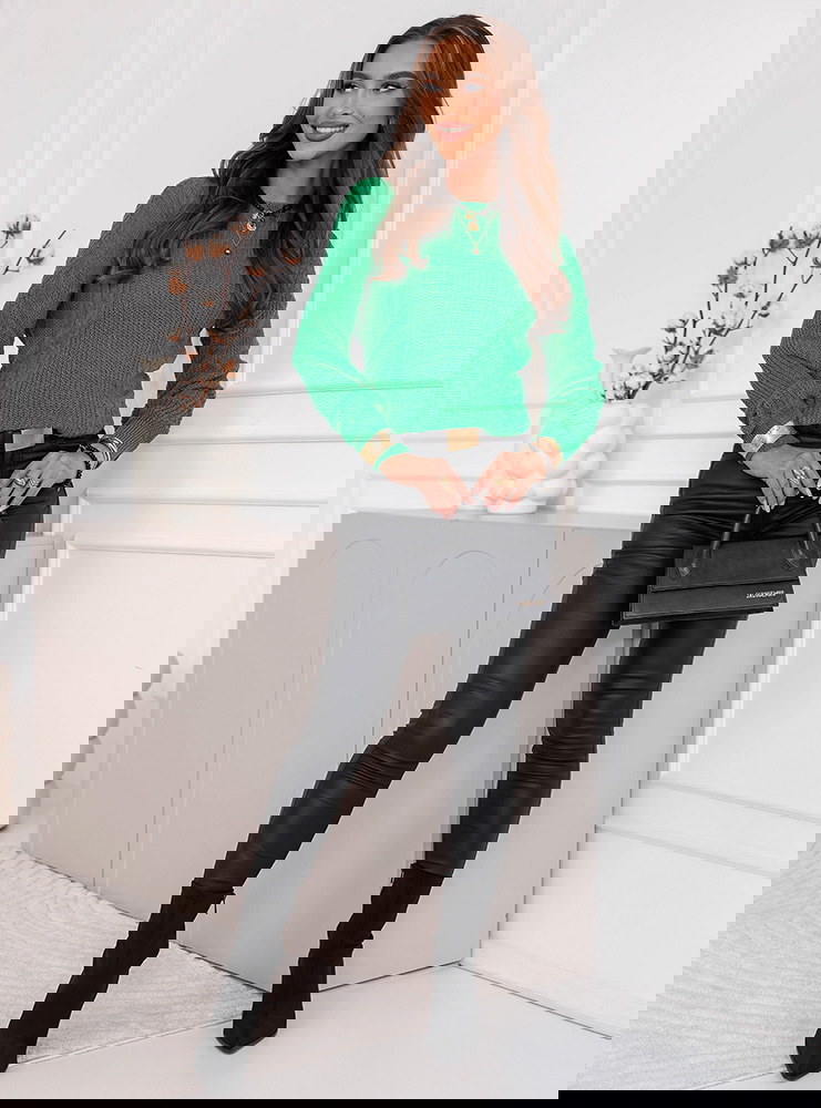 Zielony sweter z warkoczowymi splotami Brandyn doskonale sprawdzi się na co dzień, do pracy, na spotkania z przyjaciółkami czy rodzinne wyjścia. Świetnie wygląda w połączeniu z jeansami, spódnicami lub eleganckimi spodniami.