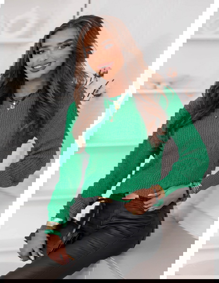 Zielony sweter z warkoczowymi splotami Brandyn