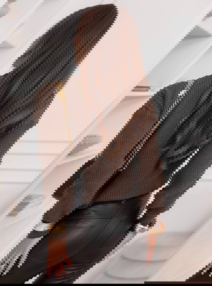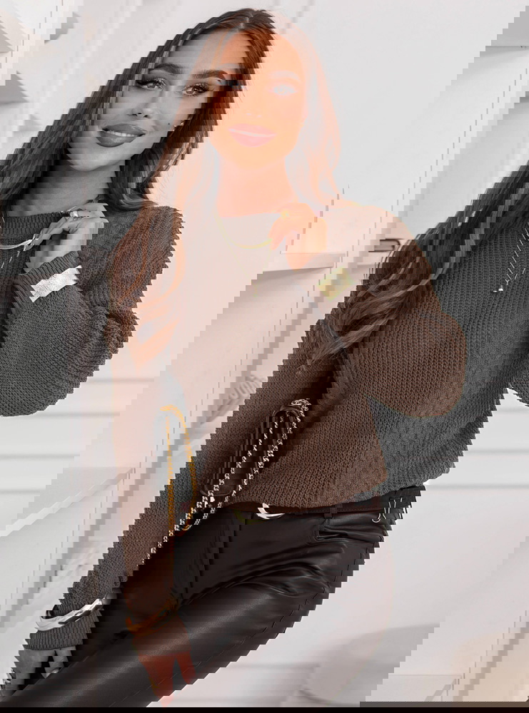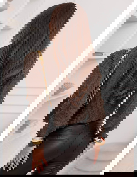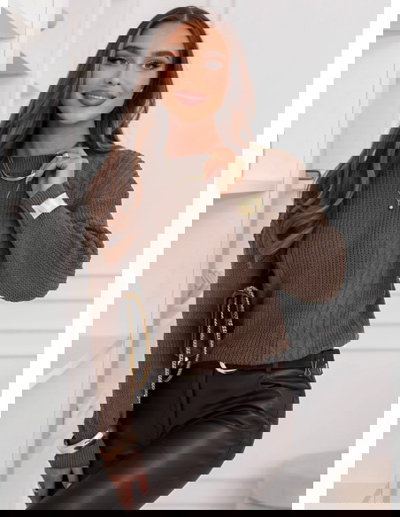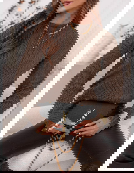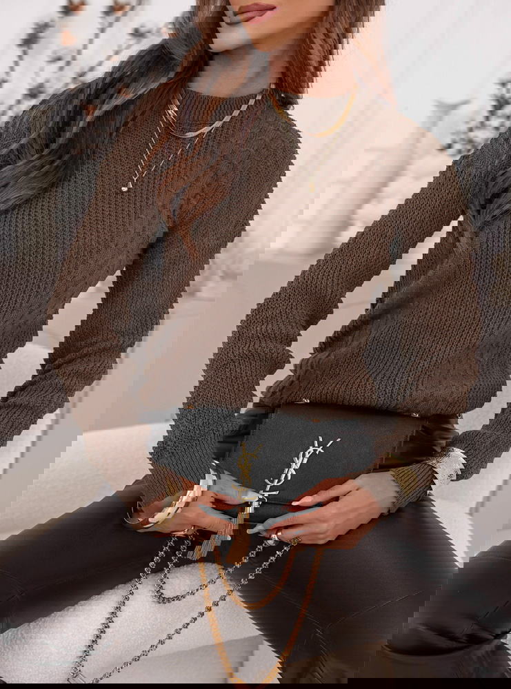 Czekoladowy sweter z warkoczowymi splotami Brandyn