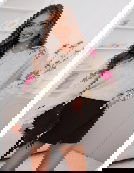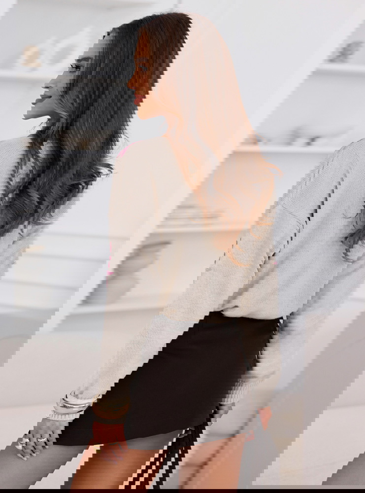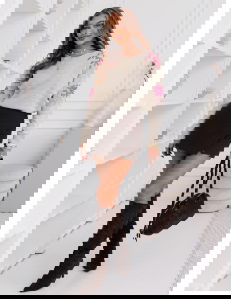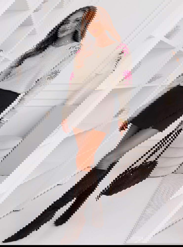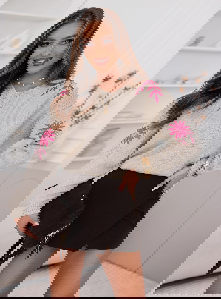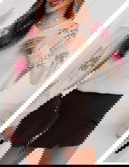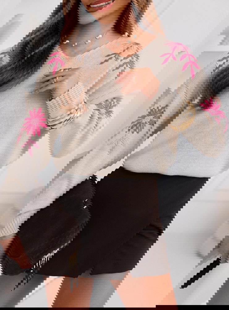 Beżowy sweter z ozdobnym haftem Jarona to połączenie klasycznej elegancji i subtelnej kreatywności. Jego jasny, uniwersalny kolor stanowi idealne tło dla dekoracyjnych, różowych haftów, które nadają całości wyjątkowego uroku. To model, który przyciąga uwagę detalami, a jednocześnie zachowuje stonowany, kobiecy charakter. Luźniejszy fason zapewnia komfort i swobodę ruchów, a miękka struktura materiału otula przyjemnym ciepłem. Haftowane motywy wprowadzają lekkość i odrobinę artystycznego akcentu do codziennych stylizacji. Sweter prezentuje się świeżo, modnie i z klasą – doskonale wpisuje się w jesienny klimat, ale sprawdzi się również w chłodniejsze dni przez cały rok. To propozycja dla kobiet, które lubią wyróżniać się w subtelny sposób, stawiając na detale i dopracowany styl.