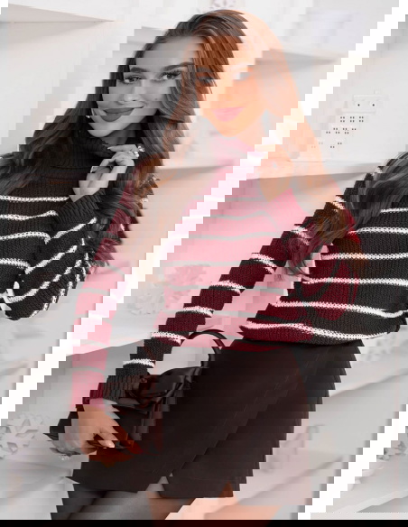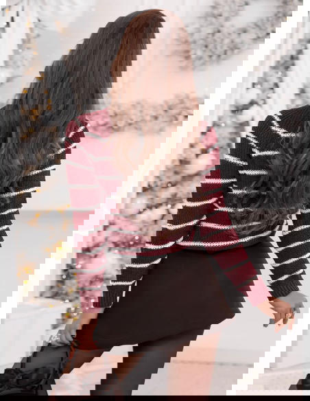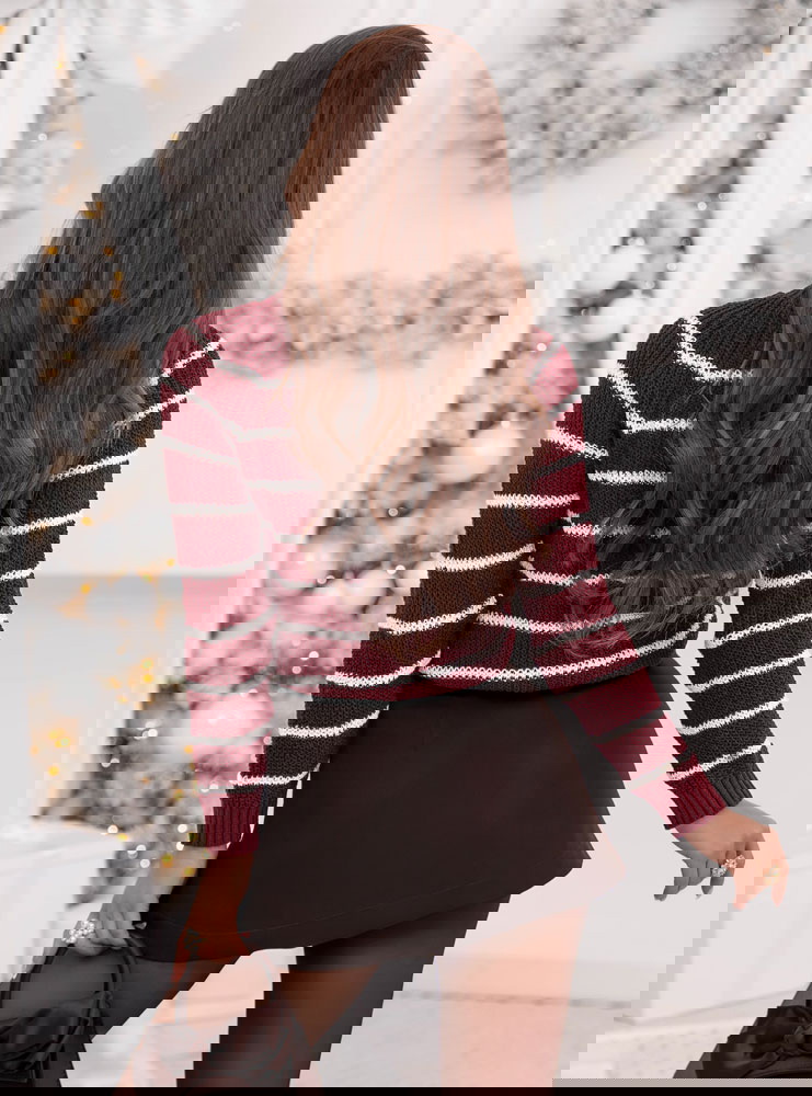 Bordowy sweter w paski Chrystallyn to stylowy i ponadczasowy element garderoby, który łączy wygodę z elegancją. Jego wyrazisty kolor i modny wzór sprawiają, że każda stylizacja nabiera charakteru.