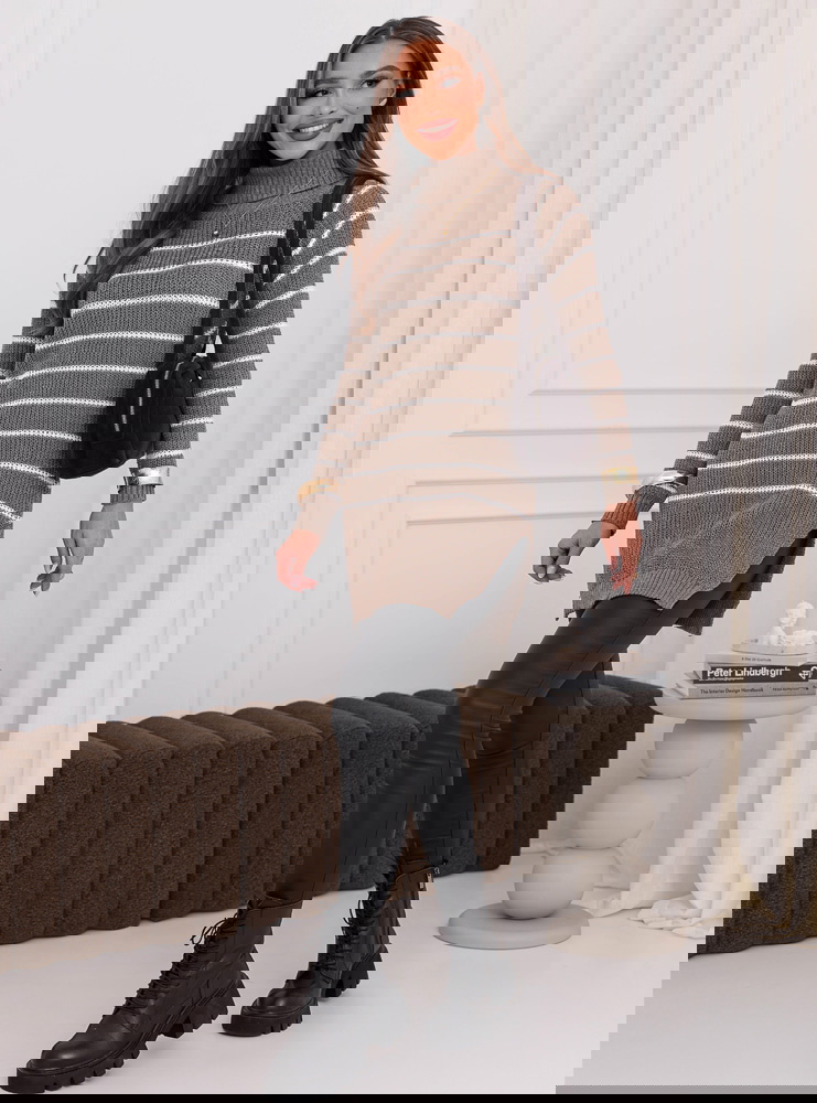 Czekoladowy sweter w paski Chrystallyn to idealny wybór na chłodniejsze dni, kiedy chcesz połączyć komfort z ponadczasowym stylem. To model, który emanuje ciepłem i przytulnością, a jednocześnie wygląda niezwykle stylowo. Klasyczne paski nadają mu lekkości i sprawiają, że prezentuje się świeżo i nowocześnie. Czekoladowy odcień idealnie wpisuje się w jesienną paletę barw, tworząc elegancką i stonowaną całość. Sweter ma luźniejszy krój, dzięki czemu zapewnia wygodę i swobodę ruchów. Doskonale wygląda zarówno w zestawieniu z dopasowanymi spodniami, jak i z legginsami czy spódnicą. To ten typ ubrania, który można nosić codziennie, a mimo to zawsze wygląda dobrze. Świetnie sprawdzi się zarówno w domowym zaciszu, jak i na miejskich spacerach. To klasyk, który nigdy nie wychodzi z mody.
