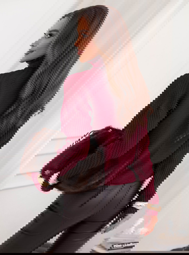 Bordowy sweter z golfem Caylore to klasyka w kobiecym wydaniu, która nigdy nie wychodzi z mody. Głęboki, nasycony kolor dodaje elegancji, a jednocześnie pięknie podkreśla jesienny klimat. To model, który łączy w sobie wygodę, ciepło i ponadczasowy szyk. Luźniejszy krój i subtelne przeszycie z przodu nadają mu nowoczesnego charakteru, a wysoki golf przyjemnie otula szyję. Sweter zachwyca prostotą i minimalizmem, dzięki czemu świetnie komponuje się z wieloma stylizacjami. Idealny zarówno na co dzień, jak i w bardziej eleganckim wydaniu – zawsze prezentuje się stylowo i z klasą. To wybór dla kobiet, które cenią ponadczasowe fasony i głębokie, eleganckie odcienie.