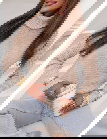Beżowy sweter z golfem Caylore to klasyka, która nigdy nie wychodzi z mody. Jego stonowany kolor sprawia, że pasuje do wszystkiego i doskonale wpisuje się w jesienny klimat. To model, który łączy elegancję z codzienną wygodą, tworząc idealną bazę do wielu stylizacji. Wysoki golf otula szyję, dodając przytulności i ciepła w chłodniejsze dni. Sweter zachwyca prostotą i ponadczasowym krojem, który zawsze wygląda stylowo. Delikatna struktura nadaje mu lekkości, a beżowy odcień wprowadza spokój i harmonię. To idealna propozycja dla kobiet, które lubią wyglądać naturalnie i z klasą. Sweter ma w sobie uniwersalny urok – jest subtelny, ale potrafi przyciągnąć uwagę eleganckim wykończeniem. Świetnie sprawdzi się w każdej sytuacji – od luźnego dnia w pracy po weekendowy spacer. To model, który łączy wygodę, kobiecość i ponadczasowy styl.