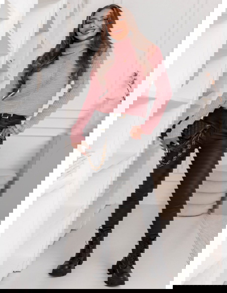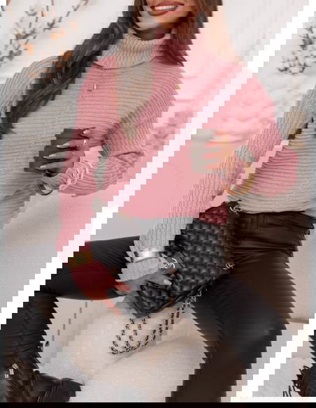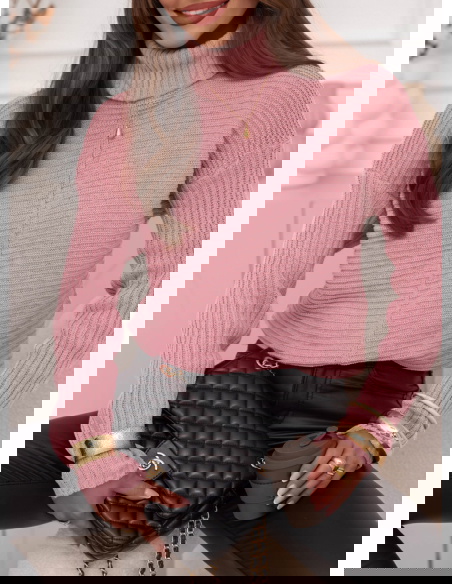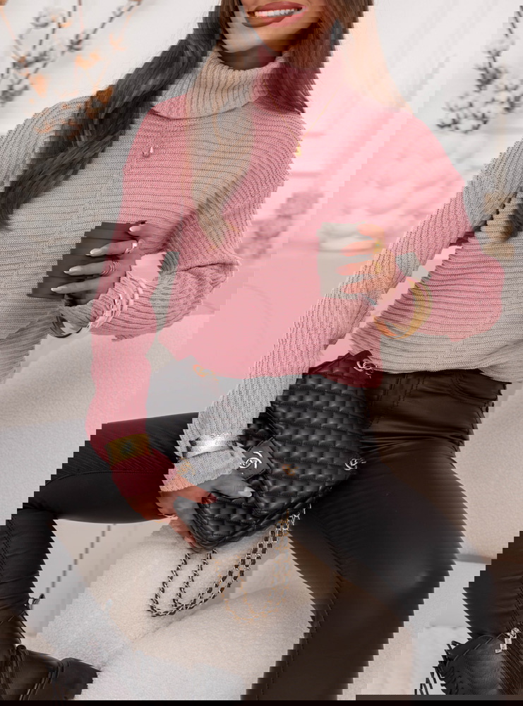 Pudrowy sweter z golfem Caylore