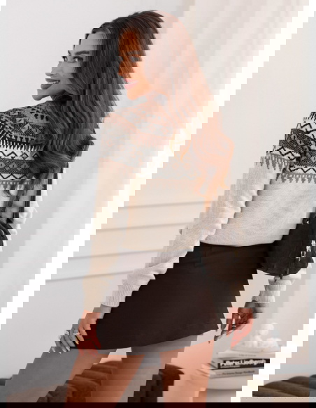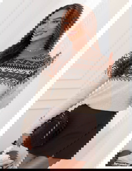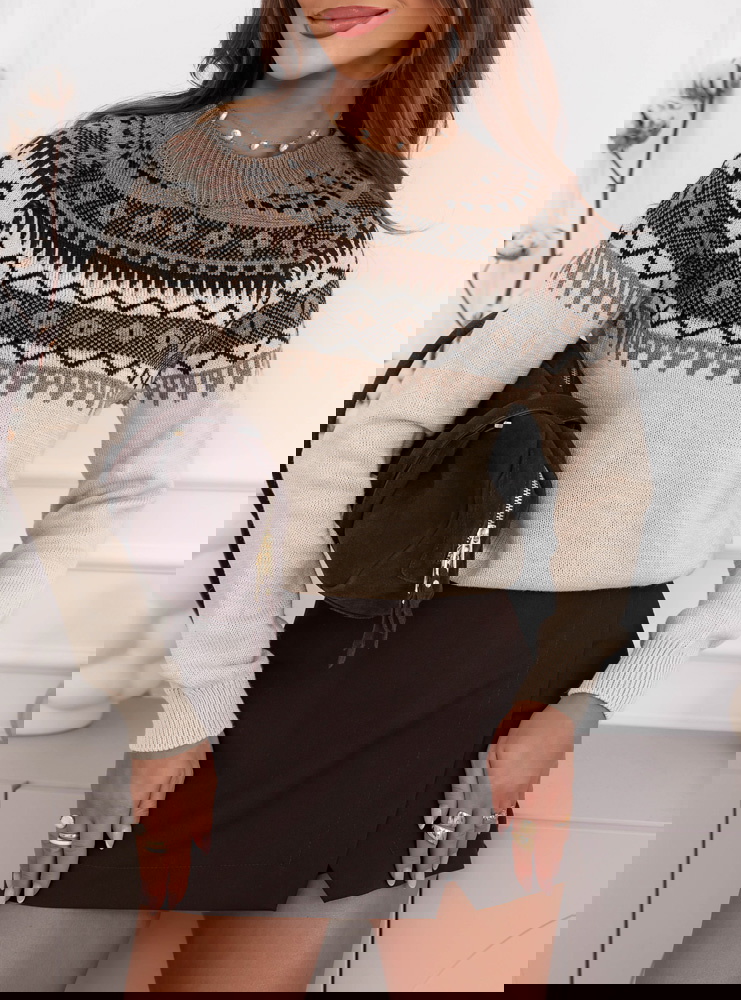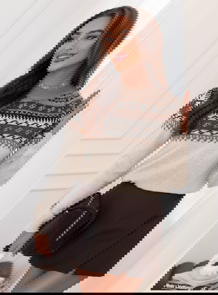 Beżowy sweter w skandynawski wzór Kenziee doskonale sprawdzi się zarówno na co dzień, jak i w bardziej casualowych zestawach. Będzie idealny do pracy, na spacer, spotkanie z przyjaciółmi czy weekendowy wyjazd.