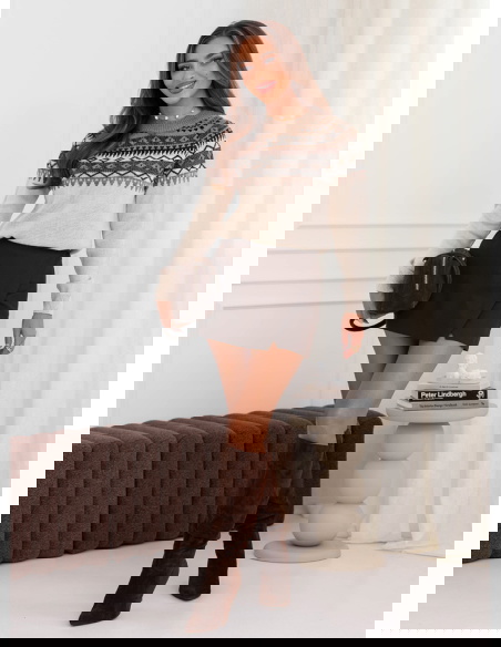 Beżowy sweter w skandynawski wzór Kenziee to idealna propozycja dla miłośniczek przytulnych, stylowych rozwiązań na chłodniejsze dni. Jego design inspirowany klasycznym, nordyckim stylem sprawia, że wygląda wyjątkowo i klimatycznie. Ciepłe odcienie beżu i brązu tworzą harmonijną kompozycję, która idealnie wpisuje się w jesienno-zimową aurę. To model, który zachwyca detalem i wprowadza do garderoby nutę tradycji w nowoczesnym wydaniu. Subtelny wzór w okolicy dekoltu pięknie podkreśla sylwetkę i dodaje całości charakteru. Ten sweter to połączenie modnej prostoty z niepowtarzalnym stylem. Dzięki swojemu uniwersalnemu fasonowi doskonale dopasowuje się do różnych sylwetek. Beżowy kolor sprawia, że łatwo zestawić go z innymi elementami garderoby – zarówno w codziennych, jak i bardziej eleganckich stylizacjach. To idealny wybór dla kobiet, które lubią wyglądać modnie, ale jednocześnie cenią wygodę. Sweter w skandynawskim wzorze to klasyka, która nigdy nie wychodzi z mody.