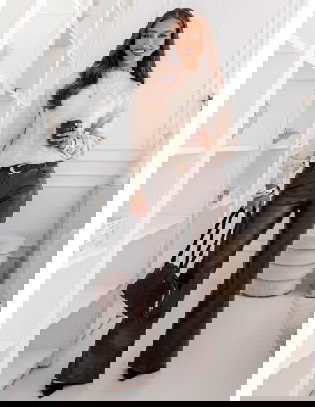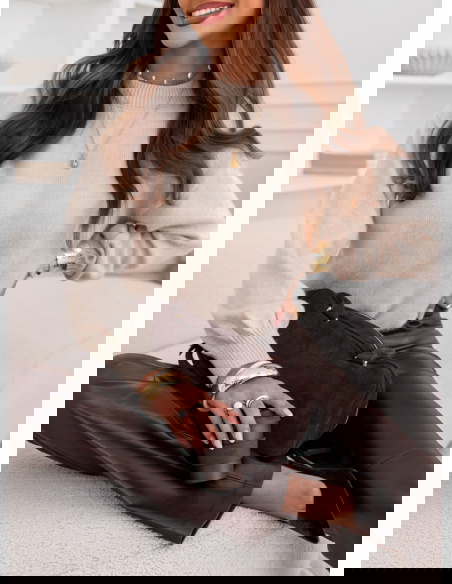 Beżowy sweter oversize Mereaina to kwintesencja jesiennego luzu połączonego z elegancją. To model, który od pierwszego założenia zachwyca swoją prostotą i ponadczasowym urokiem. Luźny fason sprawia, że każda stylizacja nabiera nonszalanckiego, ale kobiecego charakteru. Beżowy odcień dodaje mu klasy i sprawia, że pasuje praktycznie do wszystkiego – od skórzanych spodni po delikatne spódnice. Sweter idealnie wpisuje się w trend minimalizmu, a jednocześnie pozostaje wyjątkowo efektowny. Jego miękki krój tworzy swobodną linię, dzięki której można poczuć się komfortowo i stylowo jednocześnie. To idealny wybór dla kobiet, które cenią modę w naturalnym, harmonijnym wydaniu. Beżowy sweter oversize doskonale łączy w sobie wygodę i subtelną elegancję. Dzięki niemu każda stylizacja zyskuje ciepły, przytulny charakter. To propozycja, która nigdy nie wychodzi z mody i sprawdzi się przez wiele sezonów.