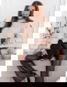 Sweter oversize Mereaina - mocha mousse to kwintesencja jesiennego komfortu i stylu. Jego ciepły, karmelowy odcień wprowadza do stylizacji przytulny i elegancki klimat. To model, który zachwyca swoją prostotą, a jednocześnie ma w sobie coś wyjątkowego. Luźny fason sprawia, że prezentuje się lekko i swobodnie, idealnie podkreślając nonszalancki charakter looku. Sweter ten to doskonały wybór dla kobiet, które cenią klasykę w nowoczesnym wydaniu. Wspaniale komponuje się z różnymi elementami garderoby – od spodni po spódnice, tworząc niezliczoną liczbę stylizacji. Jego miękka linia i lekko opadające rękawy dodają mu modnego luzu. Beżowo-brązowa tonacja sprawia, że jest niezwykle uniwersalny i pasuje do każdej karnacji. To propozycja, która podkreśla naturalny wdzięk i zapewnia pełen komfort noszenia. W chłodniejsze dni staje się niezastąpionym elementem garderoby, łącząc wygodę z modowym akcentem.