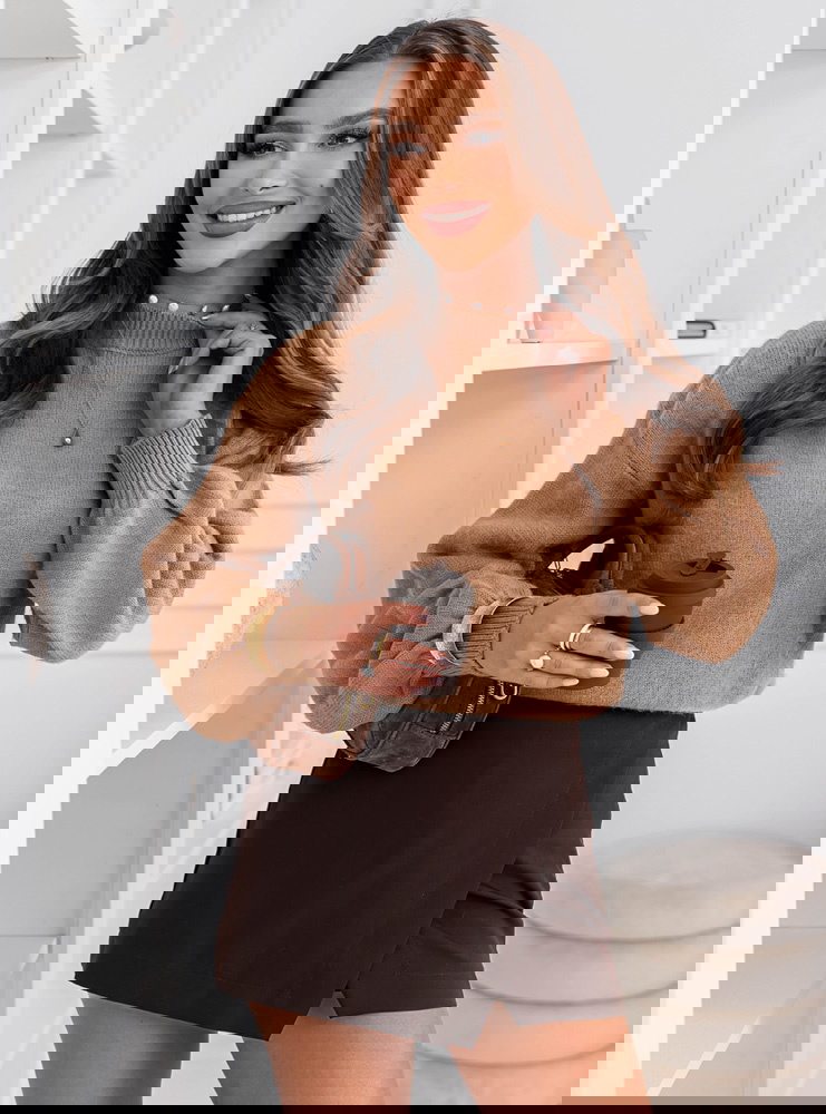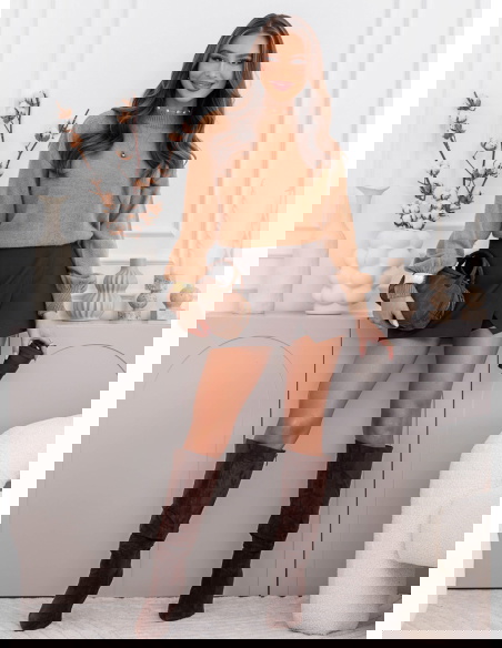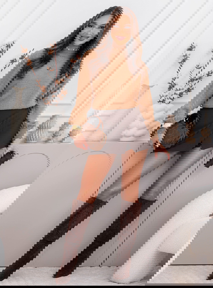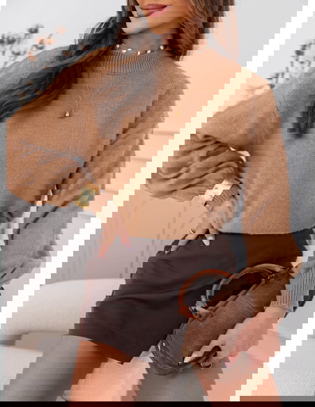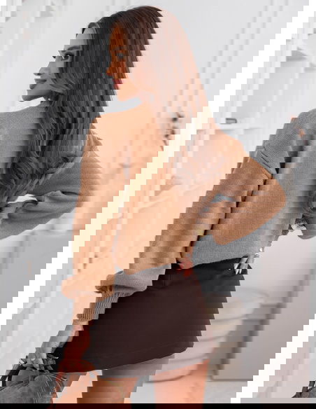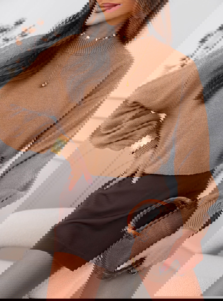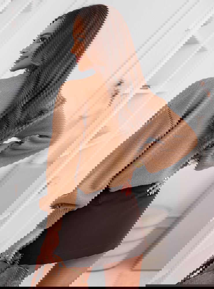 Sweter oversize Mereaina - mocha mousse to idealny wybór na co dzień, do pracy, czy na weekendowe spotkania. Doskonale prezentuje się w duecie z jeansami, eleganckimi spodniami czy krótką spódnicą.