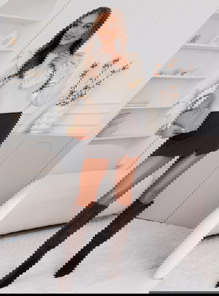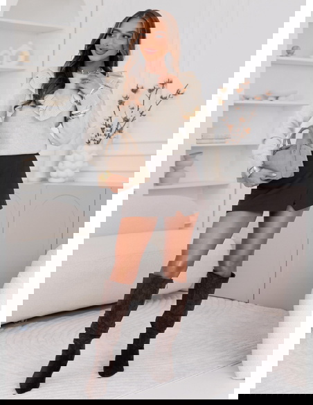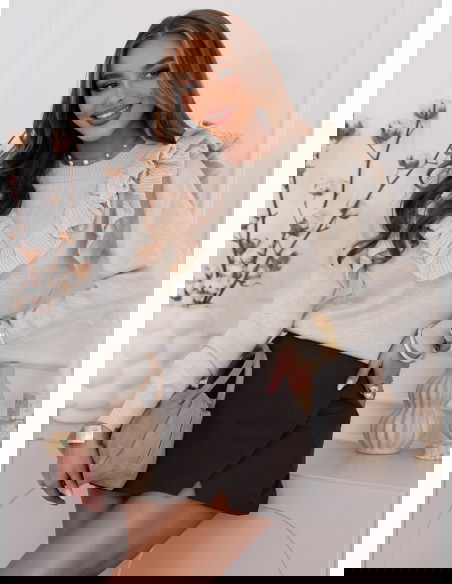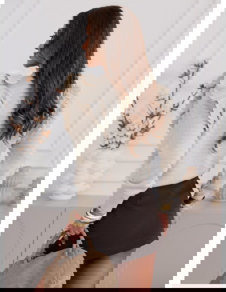 Beżowy sweter z falbankami Chalonn doskonale sprawdzi się na co dzień, do pracy, na spotkania z przyjaciółkami czy romantyczne wieczory. Świetnie wygląda w połączeniu z elegancką spódnicą, klasycznymi spodniami lub jeansami.