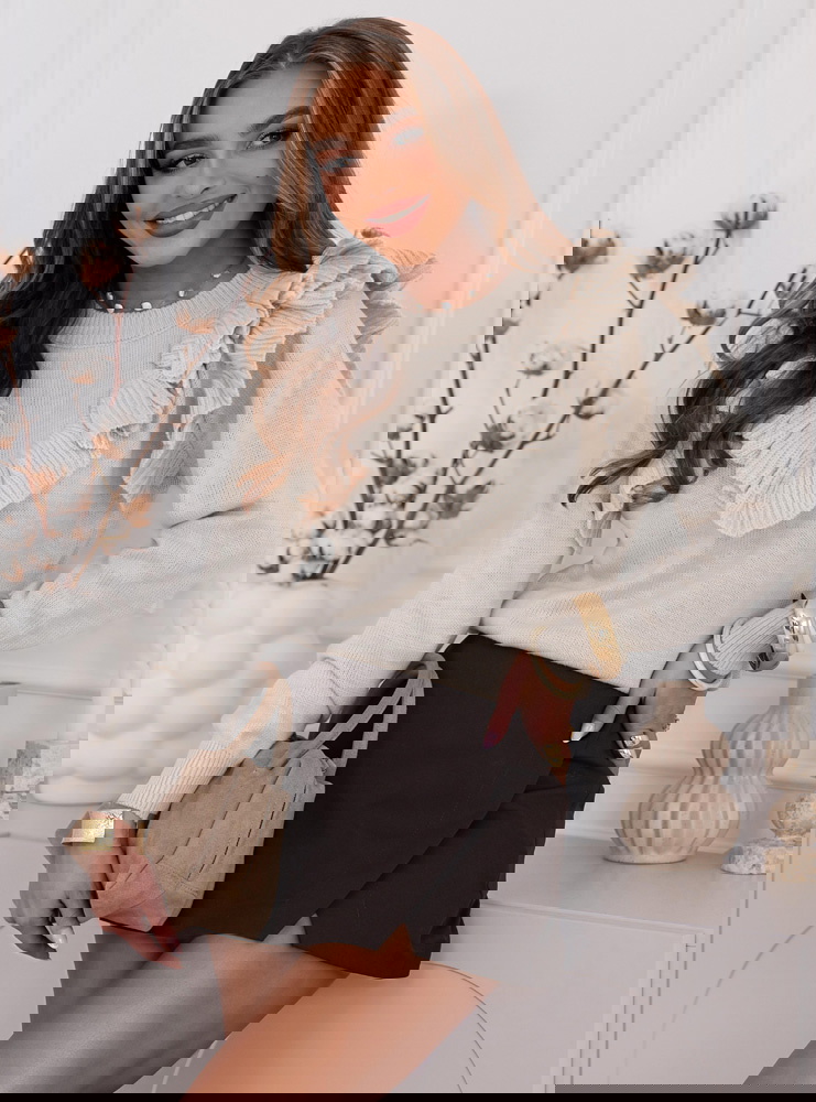 Beżowy sweter z falbankami Chalonn