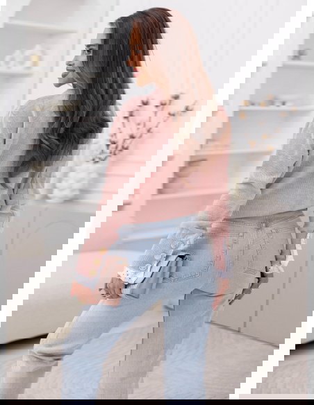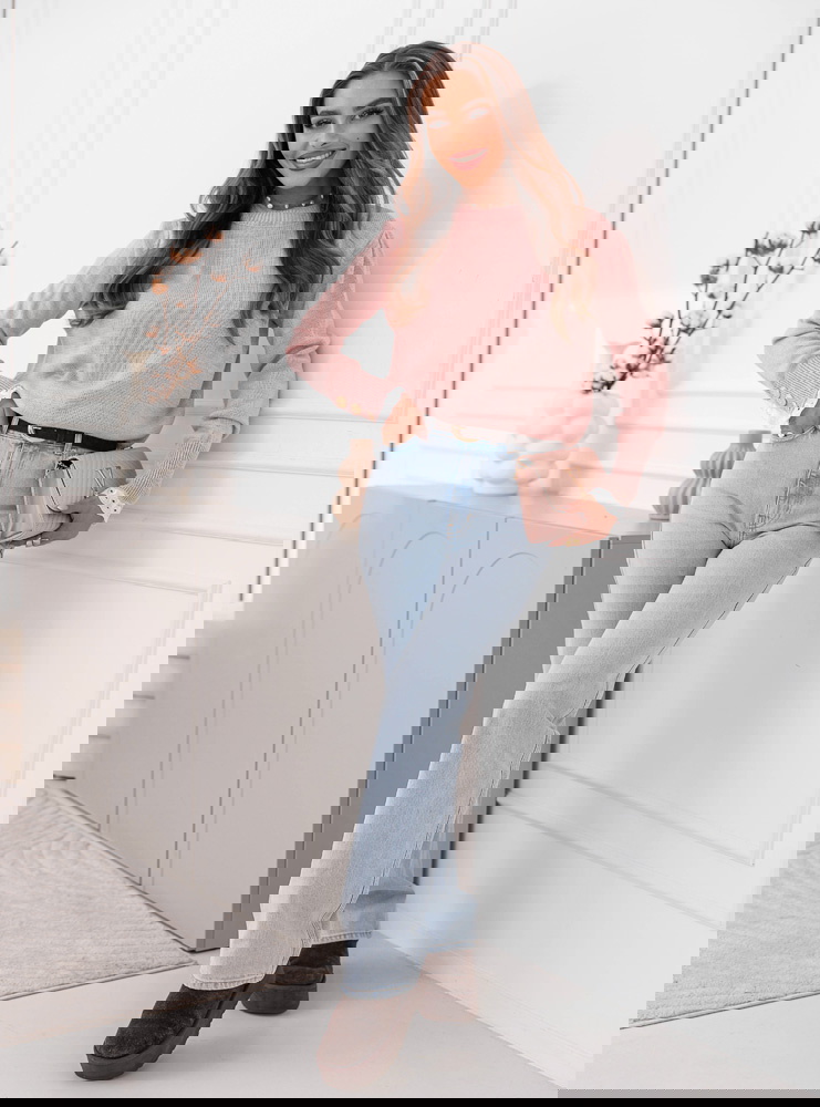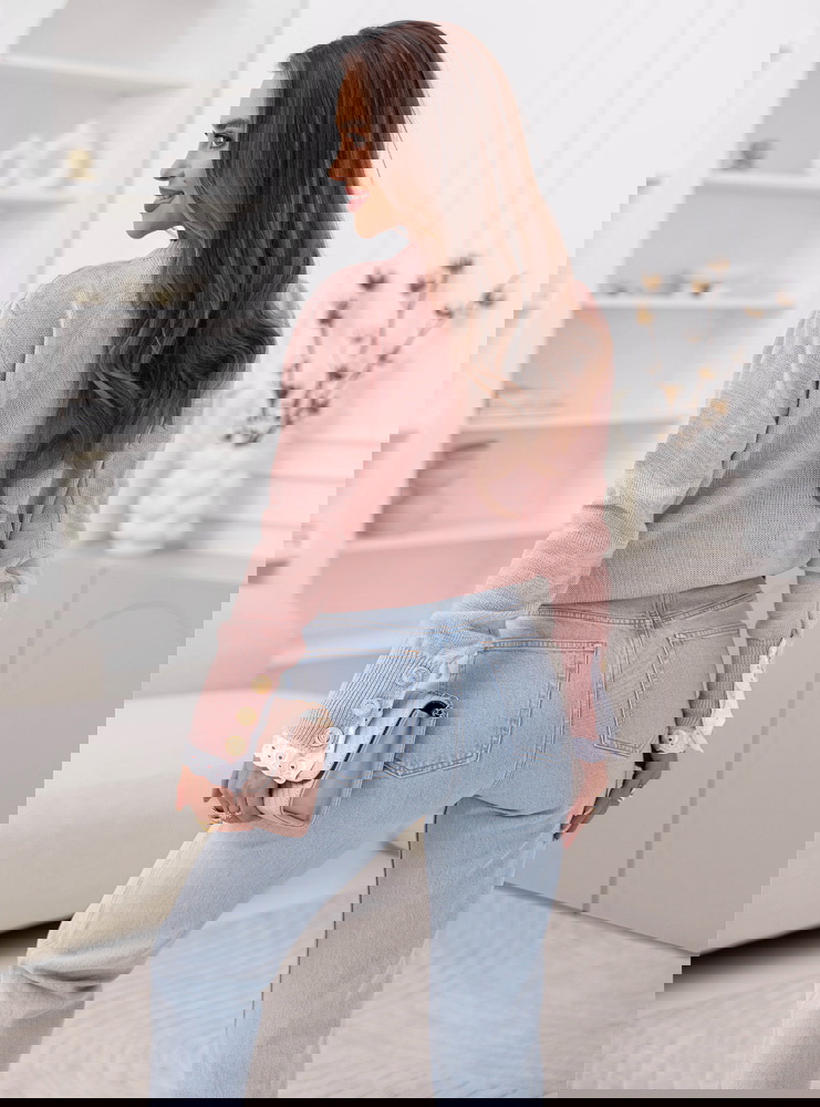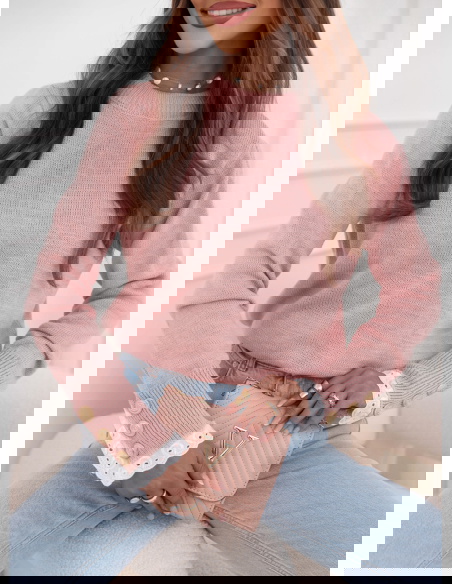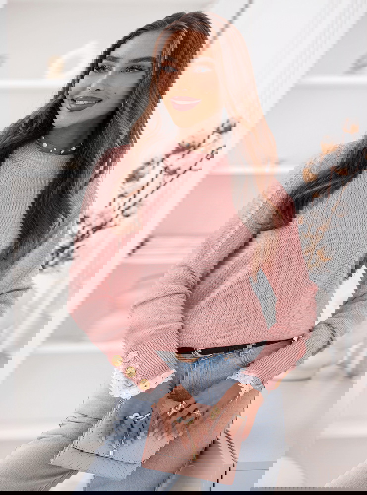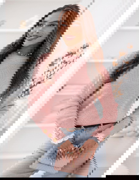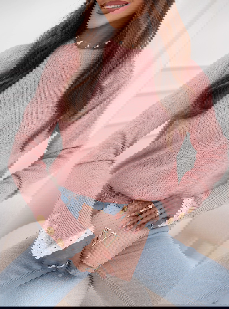 Pudrowy sweter z koronką na rękawach Teressa to idealny wybór na wiele okazji – od codziennych wyjść, po bardziej wyjątkowe chwile. Doskonale prezentuje się w połączeniu z jeansami, eleganckimi spodniami czy spódnicą.