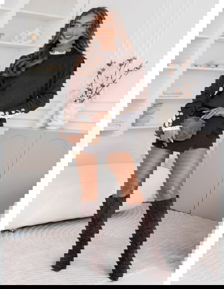 Czekoladowy sweter z koronką na rękawach Teressa to kwintesencja elegancji z nutą subtelnego uroku. Jego głęboki odcień brązu przyciąga uwagę i wprowadza przytulny, jesienny klimat. To model, który łączy klasykę z delikatnym, kobiecym detalem, tworząc wyjątkowo stylowy efekt. Koronkowe wykończenie mankietów dodaje mu lekkości i romantycznego charakteru, a złote guziki wprowadzają elegancki akcent. Ten sweter to doskonały wybór dla kobiet, które cenią wyrafinowany wygląd w codziennym wydaniu. Wyróżnia się przemyślanym krojem, który podkreśla sylwetkę, ale nie ogranicza swobody ruchów. Jego minimalistyczna forma przełamana jest dekoracyjnymi detalami, co sprawia, że wygląda niezwykle efektownie. To model, który idealnie wpisuje się w sezon jesienno-zimowy – ciepły, stylowy i kobiecy. Czekoladowy sweter z koronką na rękawach to doskonałe połączenie elegancji i wygody, które sprawdzi się w każdej sytuacji.