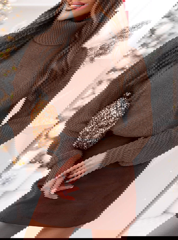 Czekoladowy sweter z golfem Evilou to stylowy wybór na sezon jesienno-zimowy. Jego ponadczasowy kolor, dopracowane detale i wygodny fason sprawiają, że staje się nieodzownym elementem garderoby.