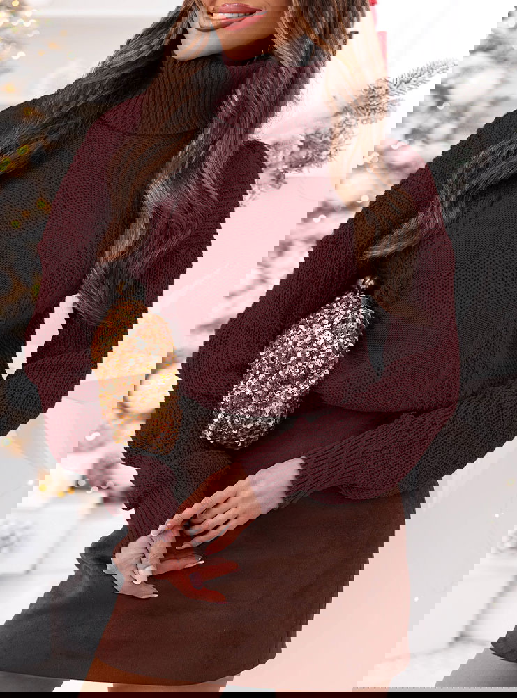 Bordowy sweter z golfem Evilou