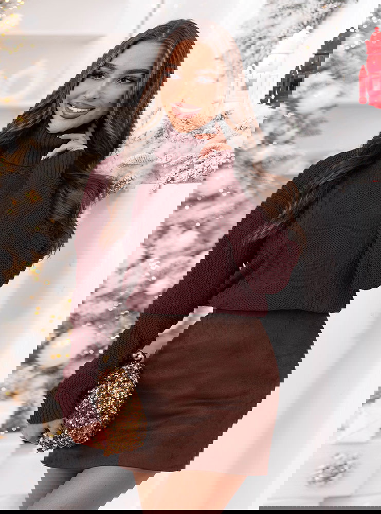 Bordowy sweter z golfem Evilou to esencja jesiennego stylu – elegancki, ciepły i niezwykle kobiecy. Jego głęboki, nasycony kolor przyciąga wzrok i wprowadza nutę klasy do każdej stylizacji. To model, który zachwyca prostotą, a jednocześnie wyróżnia się subtelnym, warkoczowym splotem. Wysoki golf otula szyję, dodając przytulności i stylowego wykończenia. To propozycja idealna dla kobiet, które lubią czuć się modnie, ale cenią też wygodę i swobodę ruchów. Bordowy odcień pięknie podkreśla urodę, dodając twarzy blasku i ciepła. Sweter sprawia, że każda stylizacja nabiera jesiennego charakteru i eleganckiego wyrazu. Jego dłuższy fason pozwala na wiele możliwości stylizacyjnych – można nosić go zarówno z jeansami, jak i legginsami. To model, który łączy przytulny komfort z wyrafinowanym wyglądem. Bordowy sweter z golfem to idealny wybór na chłodne dni – stylowy, kobiecy i ponadczasowy.