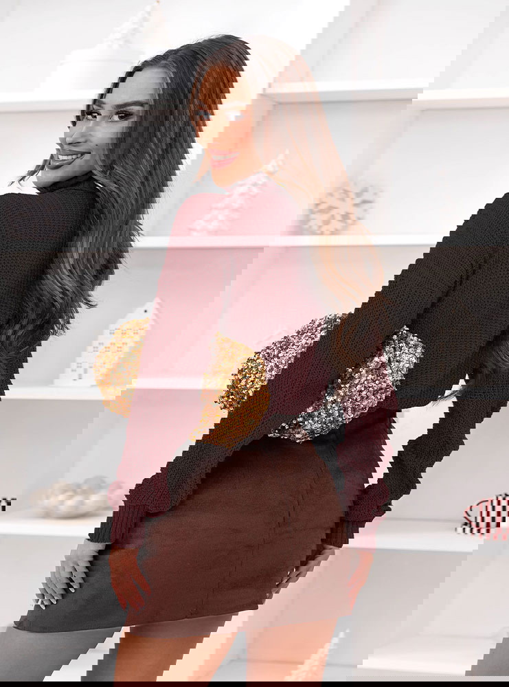 Bordowy sweter z golfem Evilou to doskonały wybór na co dzień, do pracy, czy spotkania w gronie najbliższych. Świetnie komponuje się z jeansami, spodniami z eko skóry lub legginsami.