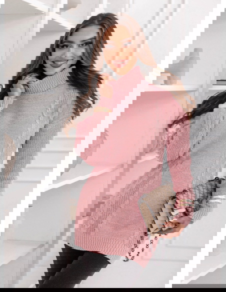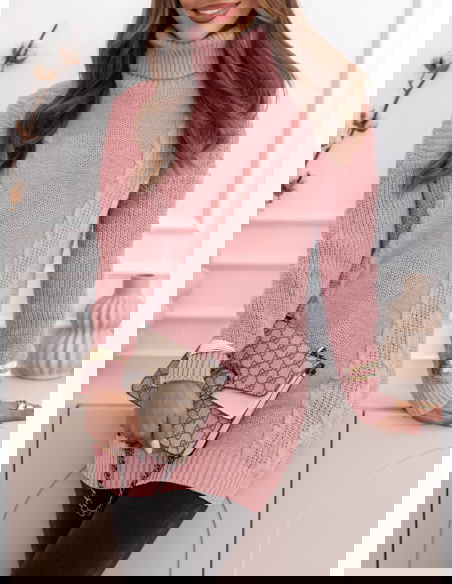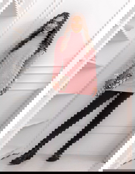 Pudrowy sweter z golfem Evilou