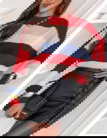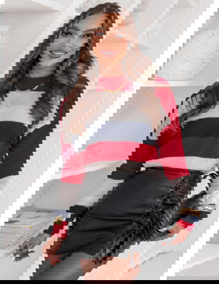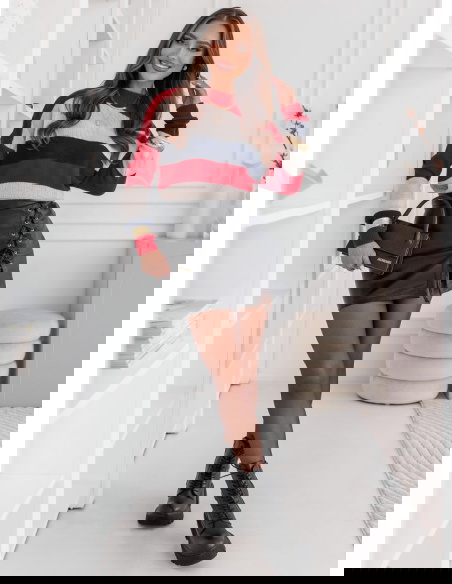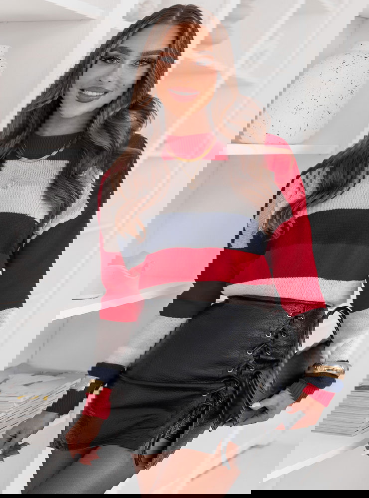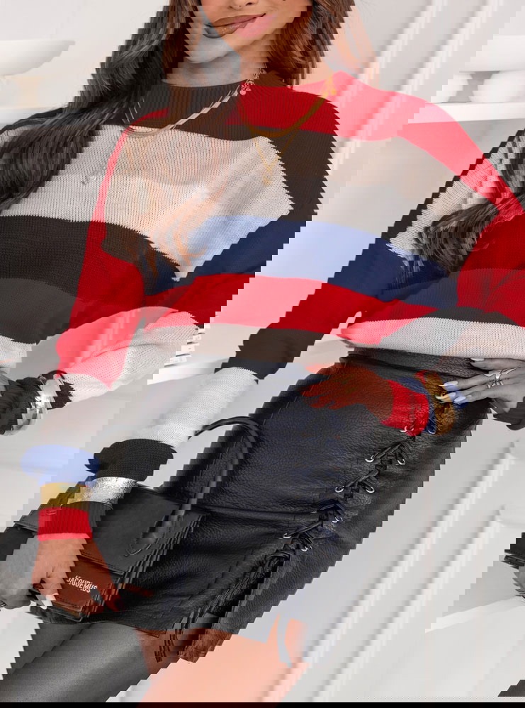 Sweter w paski Patsie - wzór 3 to energetyczna propozycja, która dodaje stylizacji charakteru i świeżości. Połączenie kolorów przyciąga uwagę i sprawia, że całość wygląda modnie i dynamicznie. To model, który idealnie wpisuje się w jesienny klimat, wnosząc do niego odrobinę koloru i pozytywnej energii. Klasyczny krój w połączeniu z wyrazistym wzorem tworzy stylowy balans między prostotą a nowoczesnością. Sweter w paski to wybór dla kobiet, które lubią bawić się modą, a jednocześnie cenią wygodę i uniwersalność. Jego fason doskonale układa się na sylwetce, podkreślając kobiecy wdzięk w subtelny sposób. Zestawiony z jeansami, spódnicą lub skórzanymi spodniami, zawsze wygląda efektownie. To model, który dodaje pewności siebie i pozwala wyróżnić się z tłumu. Idealny na chłodniejsze dni – przytulny, modny i pełen uroku. Sweter w paski to klasyk w nowoczesnym wydaniu, który nigdy nie wychodzi z trendów.