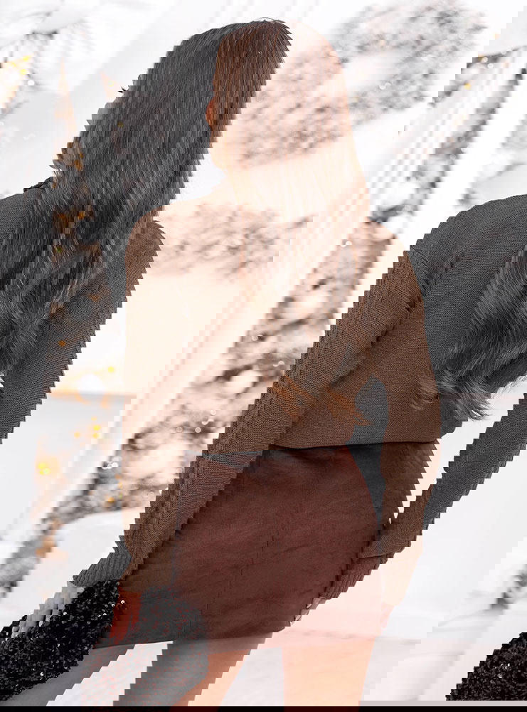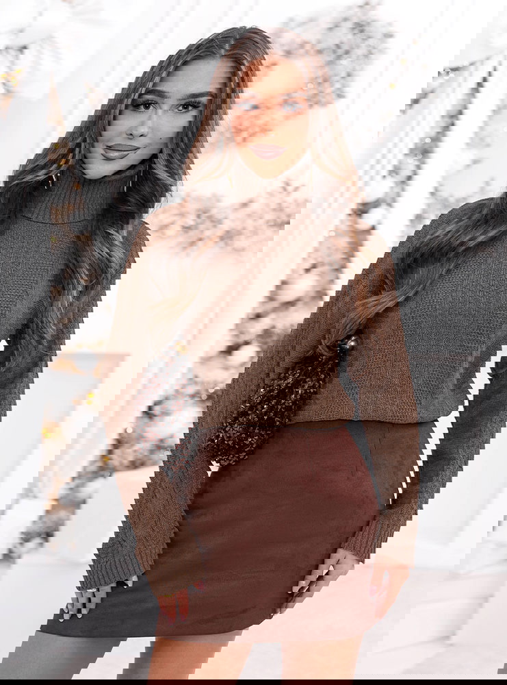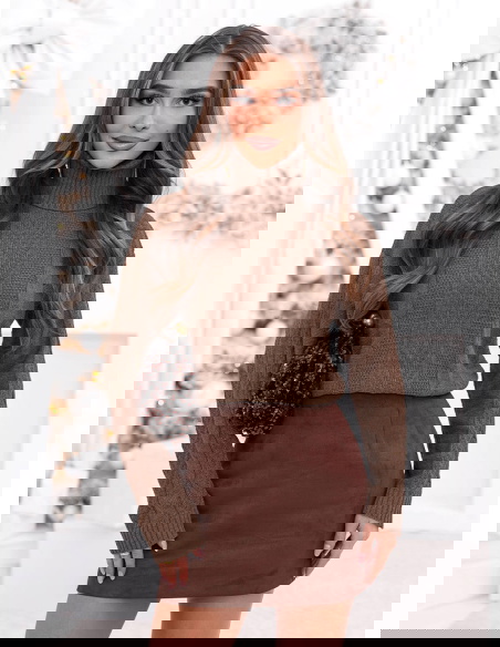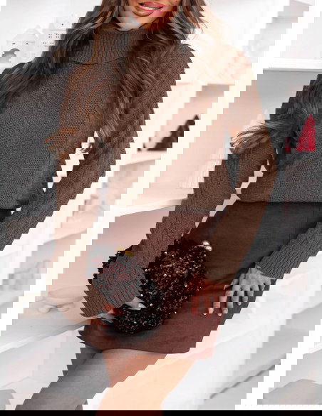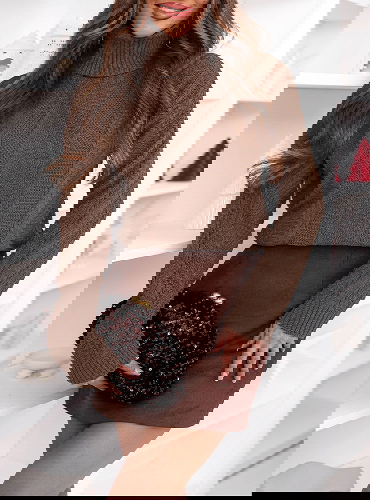 Czekoladowy długi sweter z golfem Mirate to klasyka, która nigdy nie wychodzi z mody. Jego stonowany kolor, kobiecy fason i dopracowane detale sprawiają, że będzie ulubionym elementem jesienno-zimowej garderoby.
