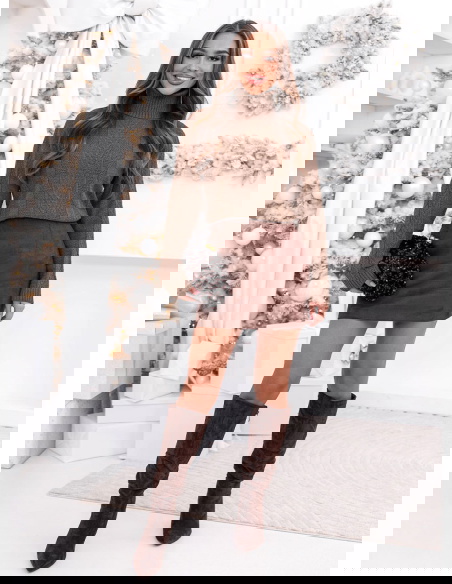 Czekoladowy długi sweter z golfem Mirate to kwintesencja jesiennego stylu – kobiecy, ciepły i niezwykle stylowy. Jego głęboki odcień brązu przyciąga wzrok i dodaje elegancji, tworząc doskonałą bazę do wielu stylizacji. To model, który łączy w sobie klasykę i nowoczesność, dzięki czemu sprawdza się w każdej sytuacji. Wysoki golf otula szyję, podkreślając przytulny charakter swetra. Dłuższy krój subtelnie wysmukla sylwetkę, a dopasowany fason pięknie ją modeluje. Sploty biegnące pionowo wzdłuż całości dodają mu struktury i wyjątkowego charakteru. To idealna propozycja dla kobiet, które lubią wyglądać elegancko, ale nie chcą rezygnować z wygody. Czekoladowy odcień świetnie komponuje się z jesienną kolorystyką – beżem, czernią, karmelowym czy złotem. To sweter, który sam w sobie stanowi mocny punkt stylizacji. Dzięki niemu nawet najprostszy outfit nabierze klasy i ciepłego uroku.