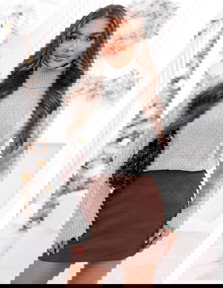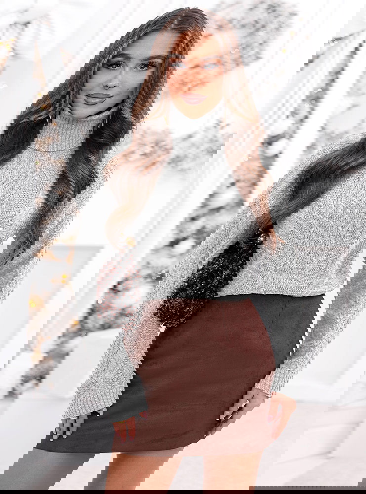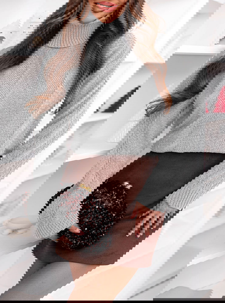 Szary długi sweter z golfem Mirate to idealna propozycja dla kobiet, które cenią sobie wygodę połączoną z ponadczasową elegancją. To model, który zachwyca prostotą, a jednocześnie emanuje stylem i klasą. Jego stonowany, chłodny odcień szarości doskonale wpisuje się w jesienno-zimowy klimat. To kolor, który łatwo dopasować do każdej stylizacji, dodając jej subtelności i harmonii. Sweter ma dłuższy krój, który pięknie prezentuje się zarówno z legginsami, jak i dopasowanymi spodniami. Golf otula szyję i wprowadza przytulny charakter, idealny na chłodne dni. Warkoczowe sploty dodają całości wyjątkowego uroku, tworząc delikatną strukturę. To propozycja, która łączy w sobie funkcjonalność i kobiecy wdzięk. Szary długi sweter z golfem to wybór, który nigdy nie wychodzi z mody. Sprawi, że każda stylizacja nabierze klasy i ciepła w jednym.