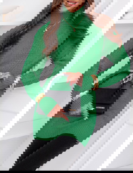 Zielony długi sweter z golfem Mirate to połączenie komfortu, ciepła i wyrazistego stylu. Jego intensywny kolor ożywia każdy outfit, a klasyczny fason sprawia, że pasuje do wielu okazji.