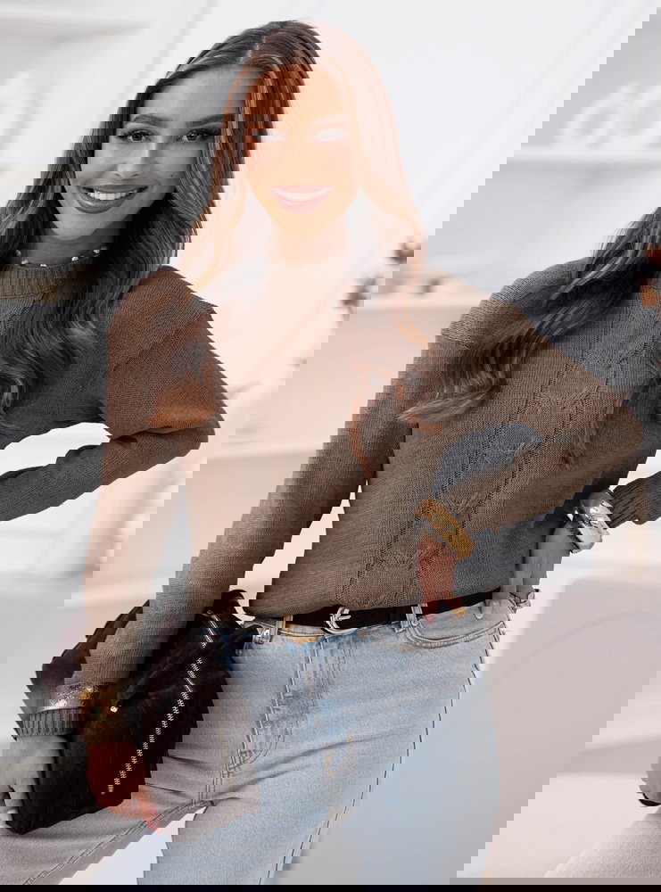 Czekoladowy sweter z warkoczykowym splotem Darnesee to propozycja, która idealnie łączy jesienną przytulność z subtelną elegancją. To model, który od pierwszego założenia wprowadza ciepły, harmonijny klimat. Jego warkoczykowy splot dodaje całości delikatnej struktury, dzięki czemu sweter prezentuje się wyjątkowo kobieco. Krój zapewnia lekką swobodę, pozostawiając stylizację naturalną i niewymuszoną. To świetna opcja na dni, kiedy chcesz poczuć jesienny komfort, nie rezygnując ze stylowego wyglądu. Bez trudu dopasujesz go do wielu codziennych zestawów, tworząc przyjemne, ciepłe kompozycje.