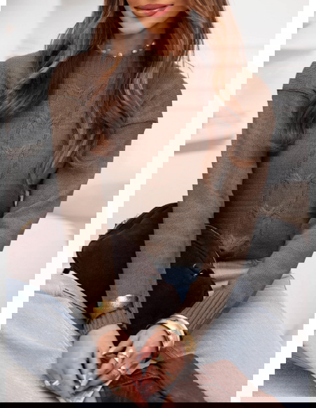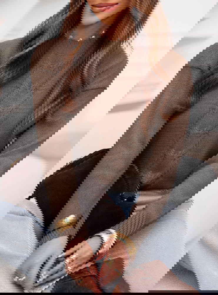 Czekoladowy sweter z warkoczykowym splotem Darnesee