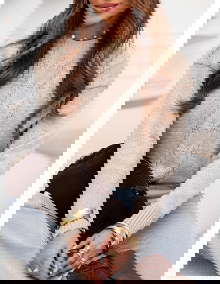 Beżowy sweter z warkoczykowym splotem Darnesee