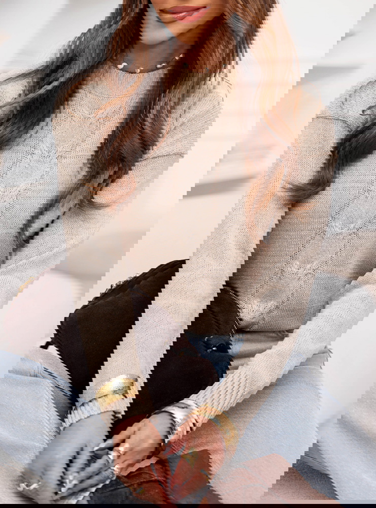 Beżowy sweter z warkoczykowym splotem Darnesee to jesienny klasyk w delikatnym, kobiecym wydaniu. Jego strukturalny splot i jasny kolor sprawiają, że każda stylizacja nabiera lekkości i ciepła. To świetny wybór dla osób ceniących przytulny styl połączony z elegancją.