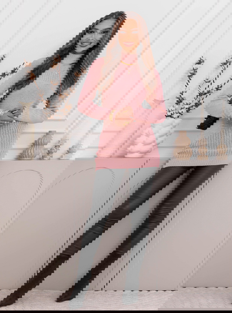 Pudrowy sweter z półgolfem Philicia