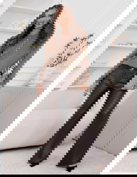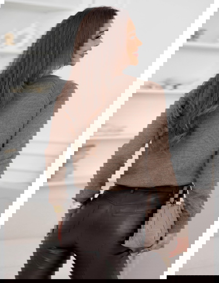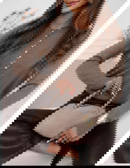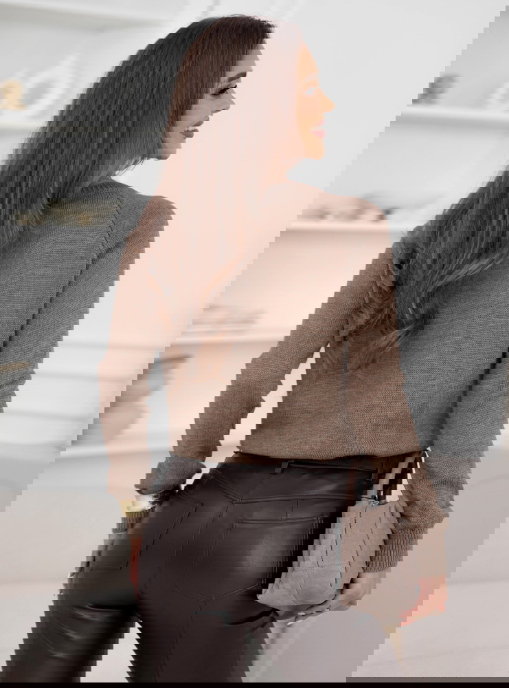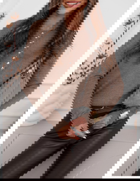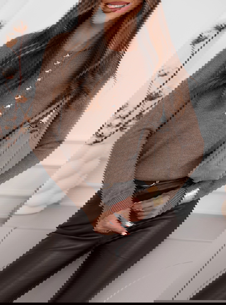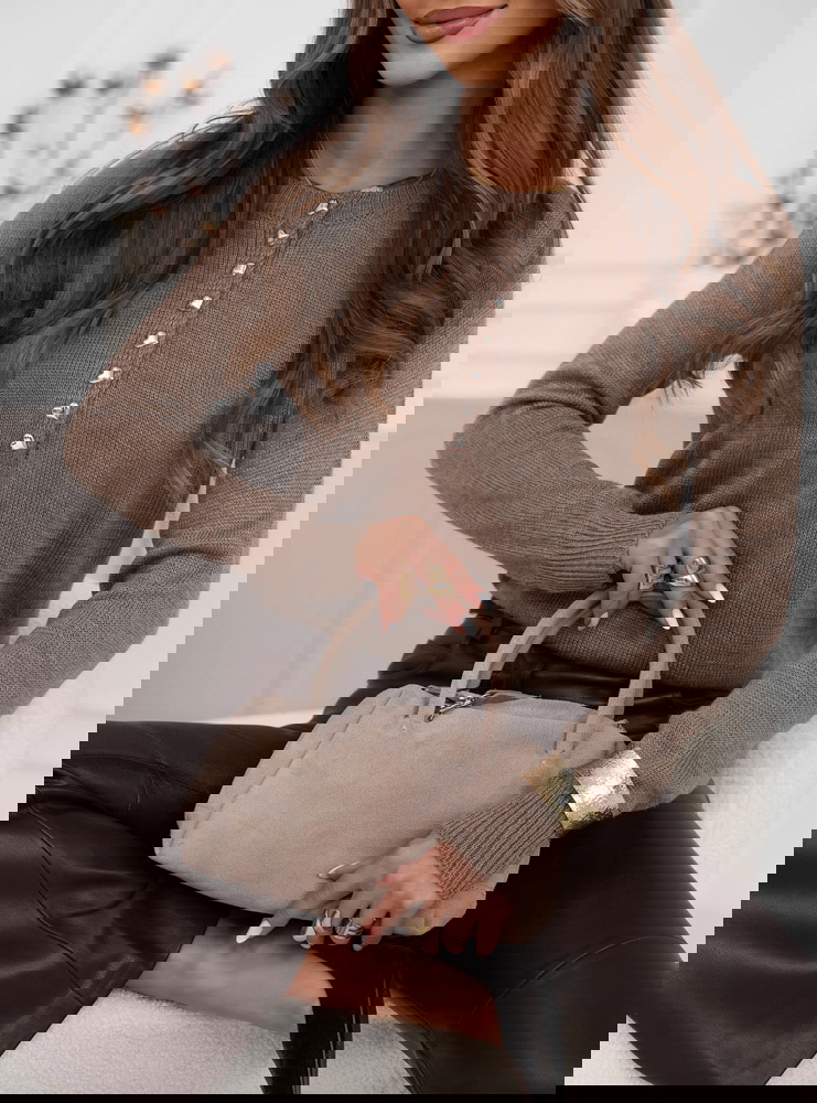 Sweter z guzikami Taurinaa - mocha mousse to propozycja, która wprowadza do jesiennej garderoby dużo przytulności i delikatnej elegancji. To model, który od razu przyciąga uwagę subtelnym odcieniem i dekoracyjnym rzędem guzików, dodających mu wyjątkowego charakteru. Jego krój zapewnia wygodę na co dzień, jednocześnie pozostając stylowym i bardzo kobiecym. Sweter miękko układa się na sylwetce, tworząc harmonijny, jesienny look idealny na chłodniejsze dni. To doskonały wybór dla osób, które cenią minimalizm przełamany drobnym, efektownym akcentem. W połączeniu z ulubionymi spodniami lub spódnicą tworzy zestaw, który sprawdzi się zarówno w pracy, jak i podczas codziennych wyjść.