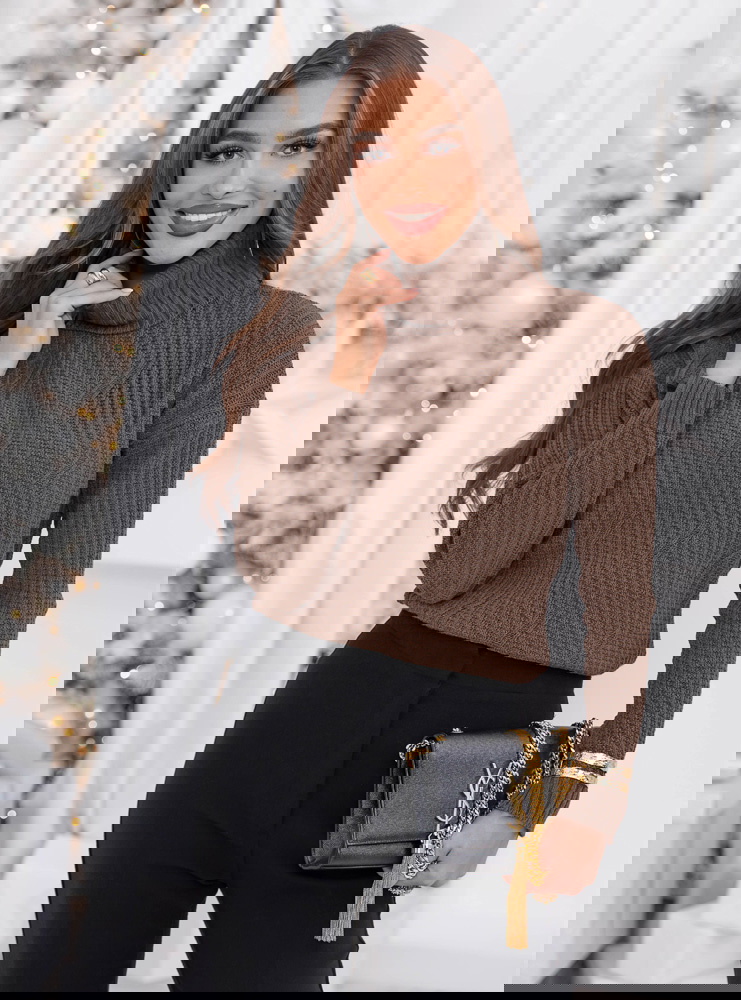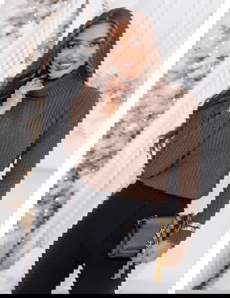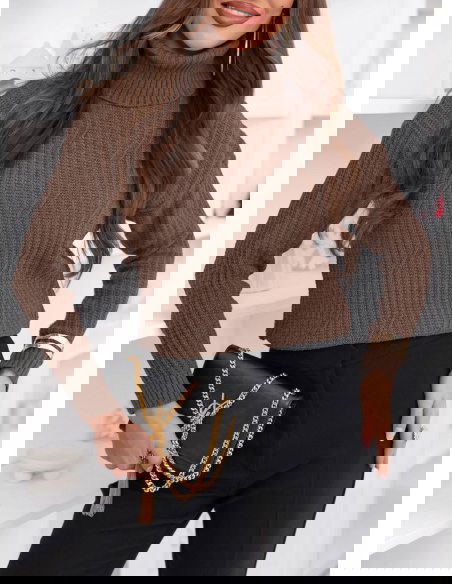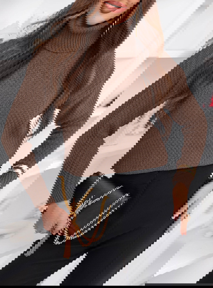 Czekoladowy sweter z golfem Fembie