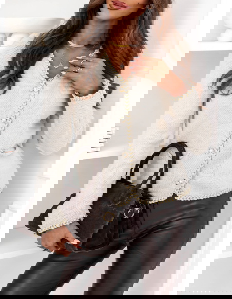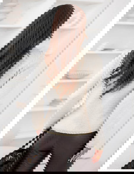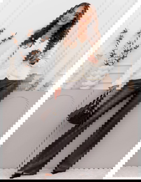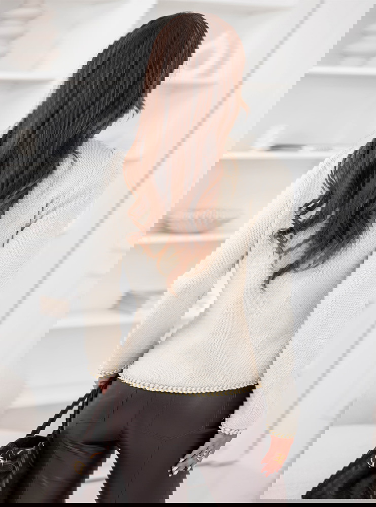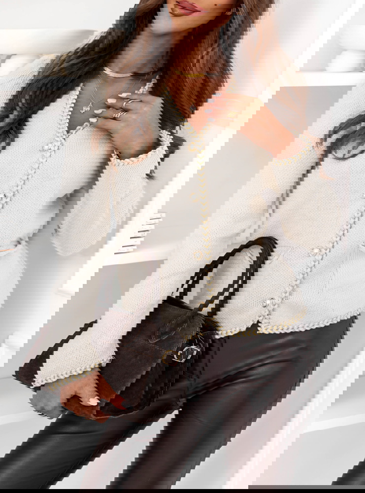 Sweter zapinany na guziki Latwina - ecru to propozycja, która wprowadza do jesiennej garderoby subtelną elegancję i przytulny charakter. To model, który od razu wyróżnia się delikatnym, ozdobnym wykończeniem nadającym mu wyjątkowego uroku. Jego krój pięknie podkreśla sylwetkę, jednocześnie zapewniając swobodę, idealną na chłodniejsze dni sezonu. Guziki dodają całości wyrafinowanego akcentu, dzięki czemu sweter staje się nie tylko praktyczny, ale również bardzo stylowy. To świetny wybór, jeśli lubisz łączyć klasyczny wygląd z odrobiną oryginalności. Z łatwością dopasujesz go do różnych jesiennych zestawów – zarówno codziennych, jak i bardziej dopracowanych.