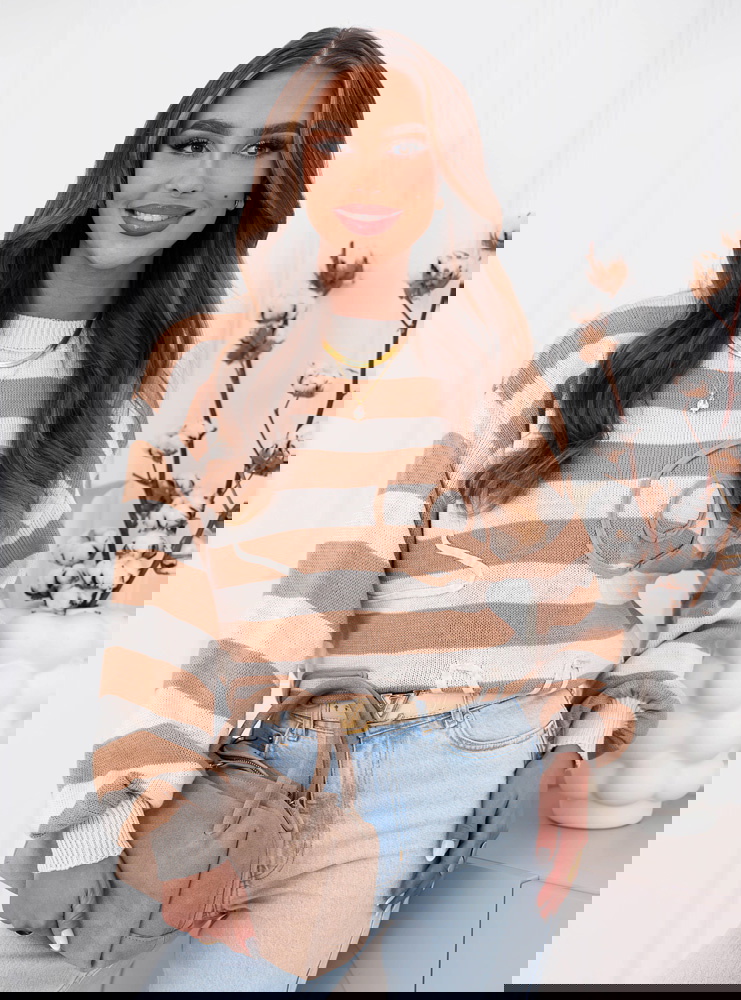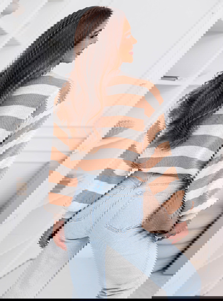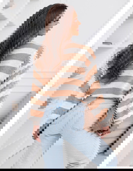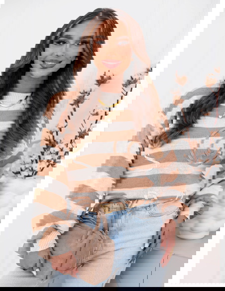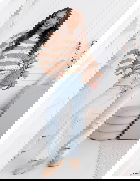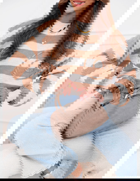 Beżowy sweter w paski Dukinea